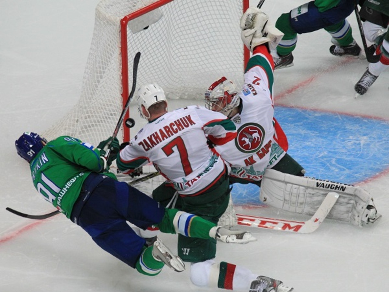 Гости много и беспощадно фолили, за что частенько отдыхали пару минут. В конце первого периода казанцев на поле осталось всего три, чем «юлаевцы» не преминули дважды воспользоваться.