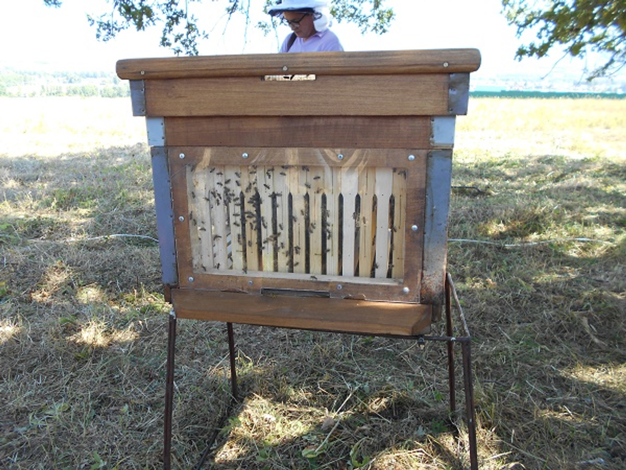 Этот уникальный улей привез Владимир Кузнецов, для того, чтобы гости фестиваля смогли подробно рассмотреть процессы, происходящие в нем. Но, пожалуй, самое большое впечатление произвел бортевик, который на довольно большой высоте выдалбливал настоящую борть в огромном дубе.