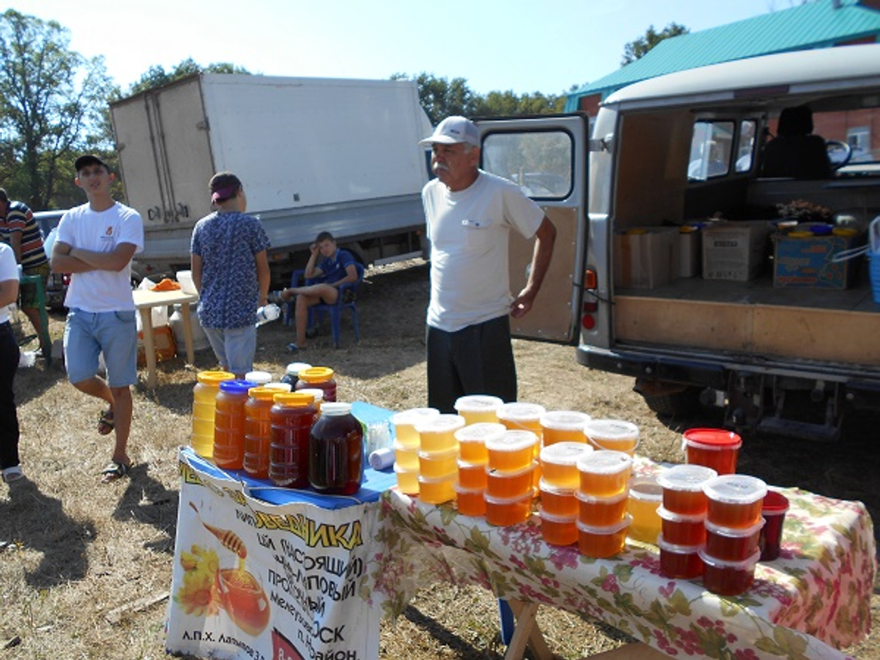 Гостей угощали душистым чаем, приготовленным на полевой кухне, к которому подавались торты-медовики, и, конечно же, мед.