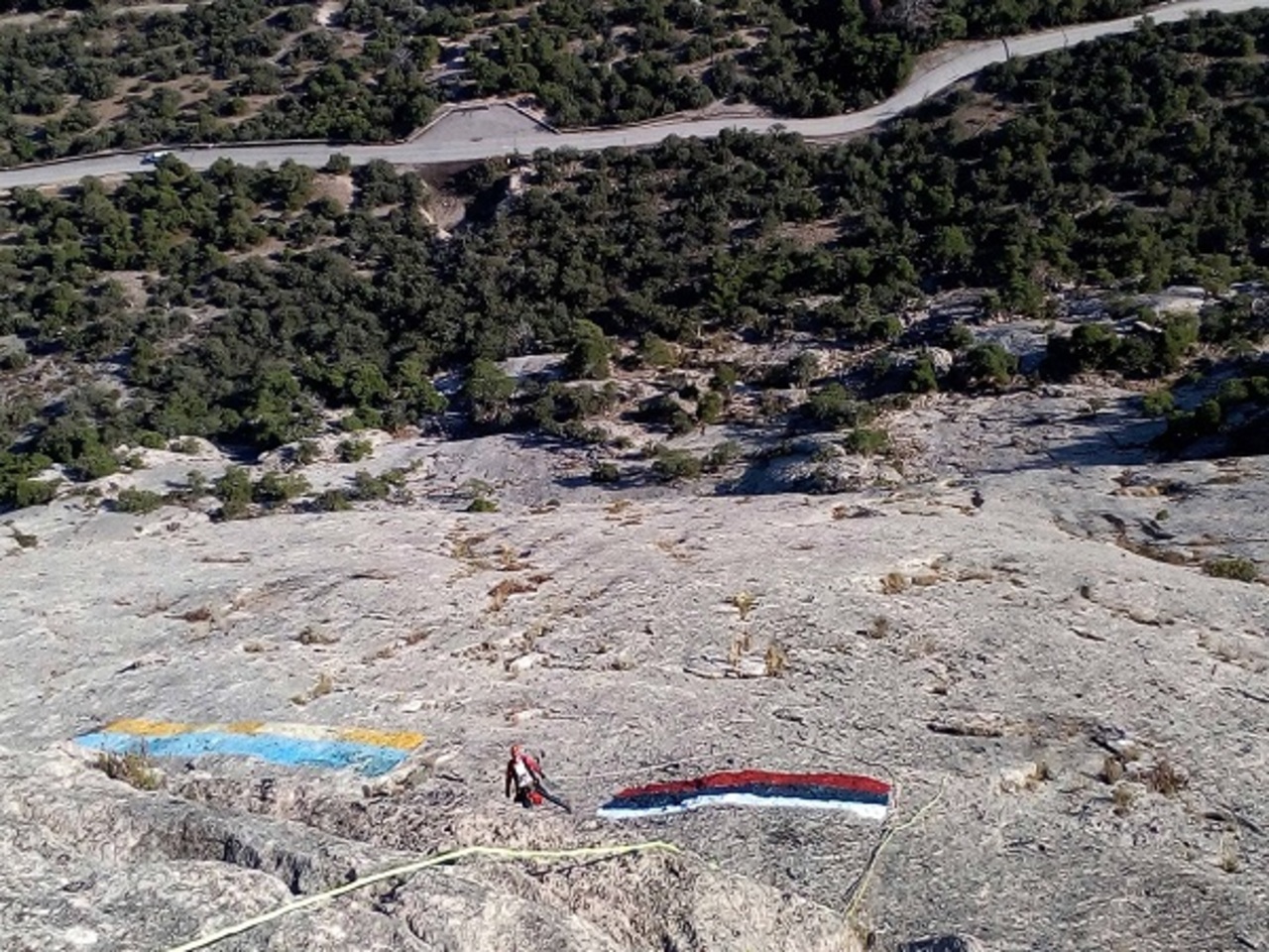 — В 2014 году на горе Сокол проводились международные соревнования по скалолазанию, — рассказывает Евгений «Электрогазете». — Во время этих соревнований участники изобразили на горе украинский флаг. Так как Крым перешел в состав России, мы решили рядом с флагом Украины нарисовать российский триколор. Свои действия мы согласовали с администрацией города Судак. Я лично ходил на прием к заместителю главы администрации. Он с воодушевлением воспринял эту идею. Нам даже предоставили краску.