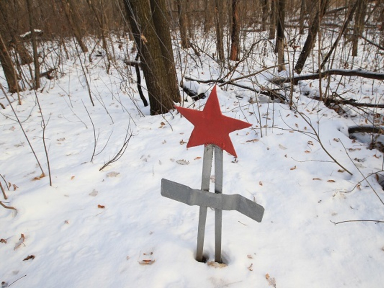 — Такую версию могли выдвинуть школьники, которые не жили в Советском Союзе, — отметил поисковик. — Ведь в Советском Союзе всех под звездами хоронили, как показатель того, что в могиле покоится советский гражданин. Под звездами могли хоронить трудармейцев, они тоже были военнообязанными, только воевали не на передовой, а в тылу. Также над одной из могил на Курочкиной горе установлена металлическая пирамида.