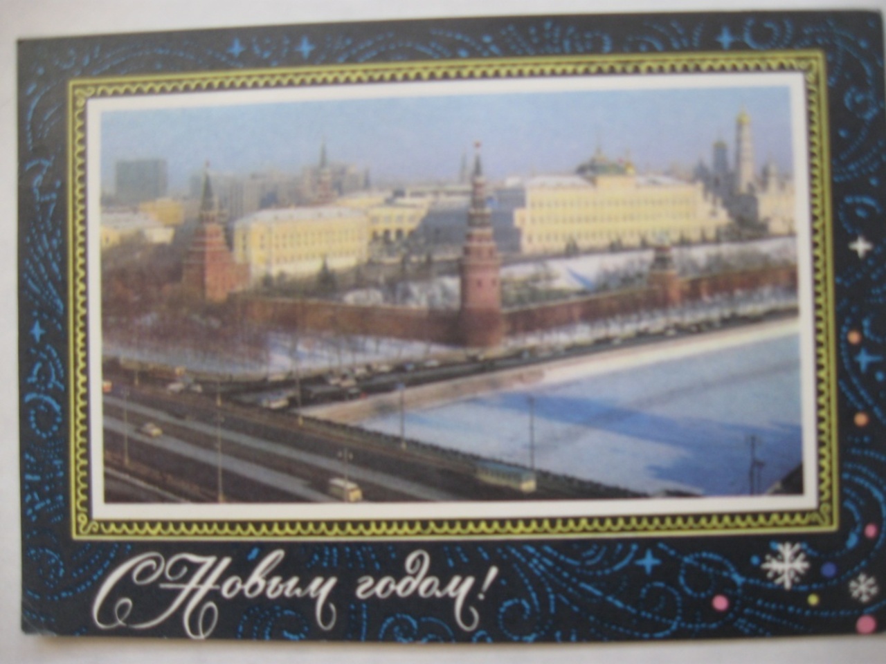 Эта открытка прилетела из 1972 года, когда я уже заканчивала школу. Мне желают «всего наилучшего в 1973 году». Без обратного адреса. И такие почтовые отправления доходили без проблем, лишь бы адрес получателя был правильным. Зато на фото в рамочке мы видим Кремль, каким он был почти 45 лет назад. Обратите внимание, как мало на дорогах машин. А теперь «автомобили, автомобили буквально всё заполонили», как поется в одной когда-то модной песенке.