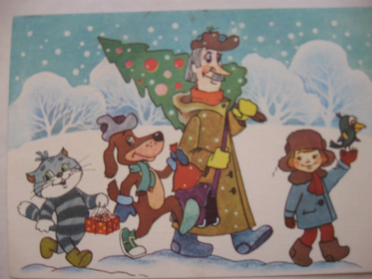 Ну, как же обойтись без героев любимых мультфильмов? Вот на карточке ценою пять копеек герои популярного до сих пор мультипликационного фильма «Каникулы в Простоквашино»: дядя Федор, почтальон Печкин, Шарик и кот Матроскин.