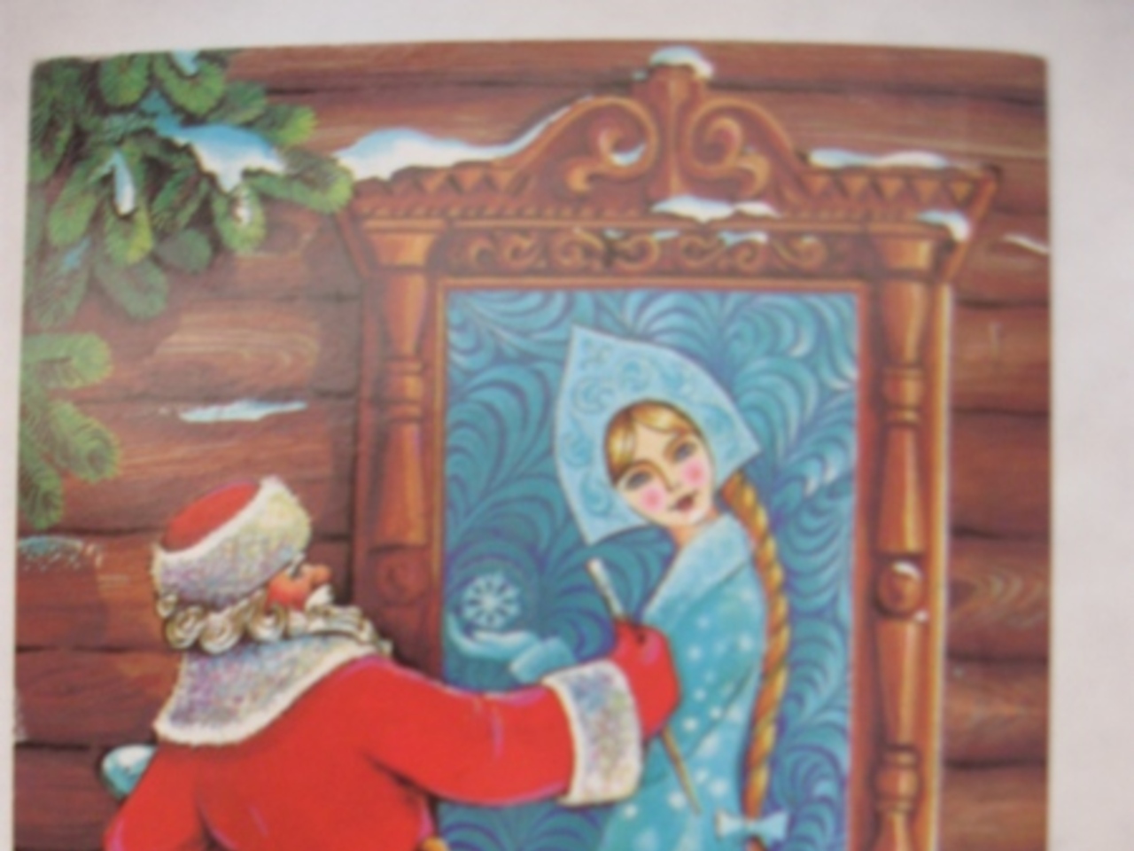 Дедушка Мороз и Снегурочка. Без этой неразлучной парочки не обходится ни один новогодний утренник и даже праздник для взрослых. А уж на открытках они несомненные лидеры. Каким только не изображают художники Деда Мороза: и серьезным, в длиннополой бархатной шубе, и смешным – в огромных валенках и рукавицах, но всегда добрым и щедрым, с мешком подарков и ёлкой за плечами. А вот Дед Мороз рисует красавицу Снегурочку. Открытка выпущена в 1983 году. Кстати, тираж 17 миллионов экземпляров!