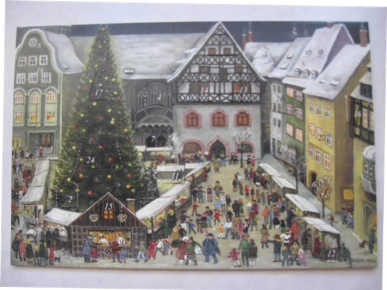 Завершить этот рассказ-выставку полиграфических раритетов хочу показом открытки, прибывшей несколько лет назад из Йены от моих давних друзей. Особенность открытки в том, что она объемная. На картинке каждое окошечко с цифрами открывается, что особенно интересно детям.