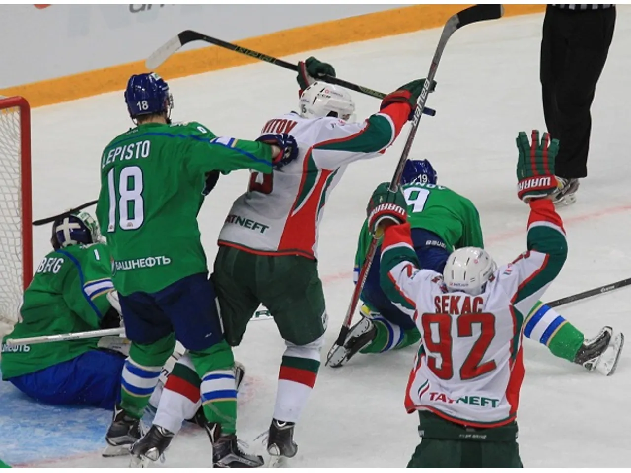 В итоге за 44 секунды до конца третьей двадцатиминутки, играя с пустыми воротами, уфимцы всё же смогли забросить шайбу — Кирилл Капризов подставил клюшку под наброс Линуса Умарка.