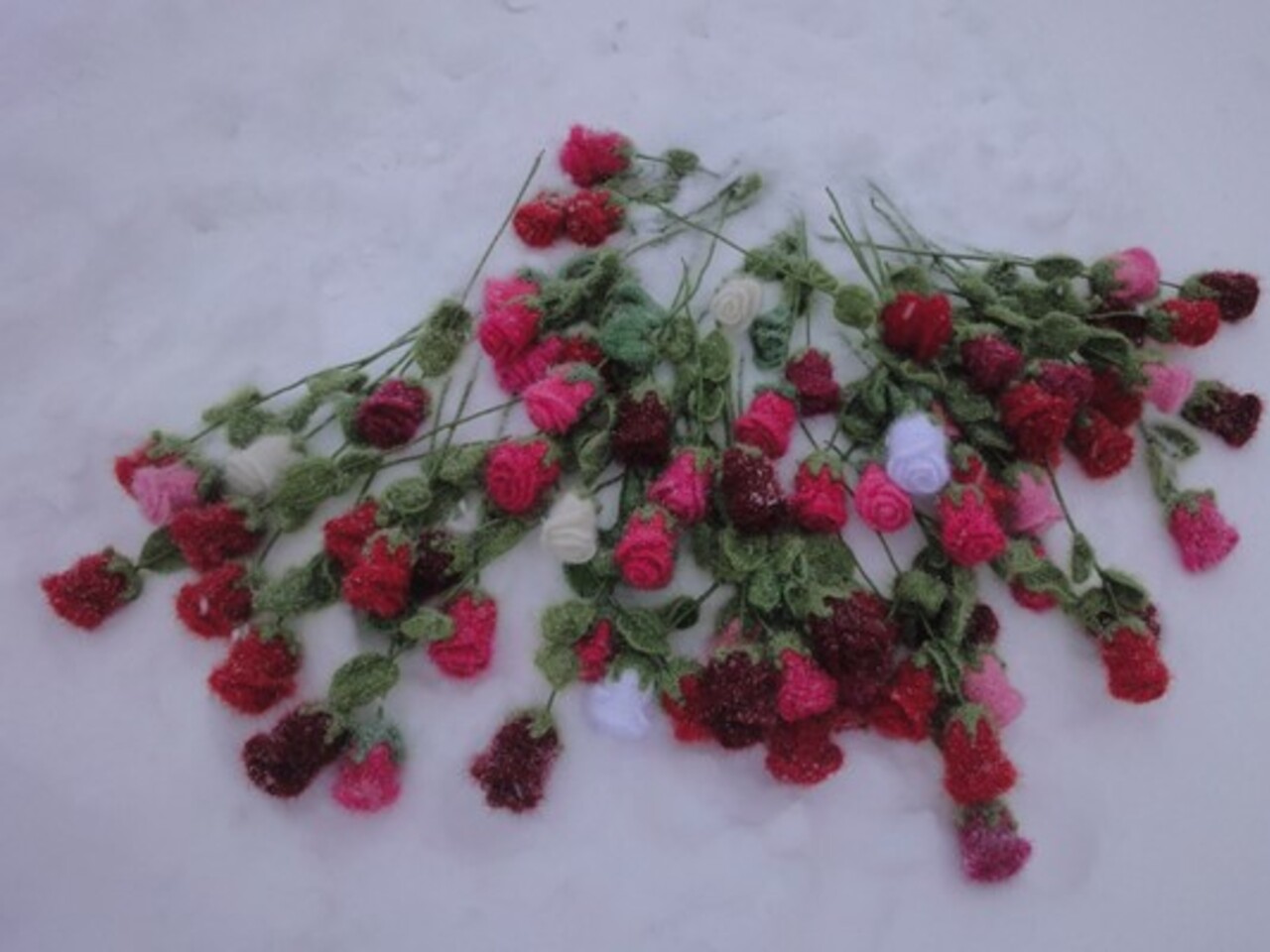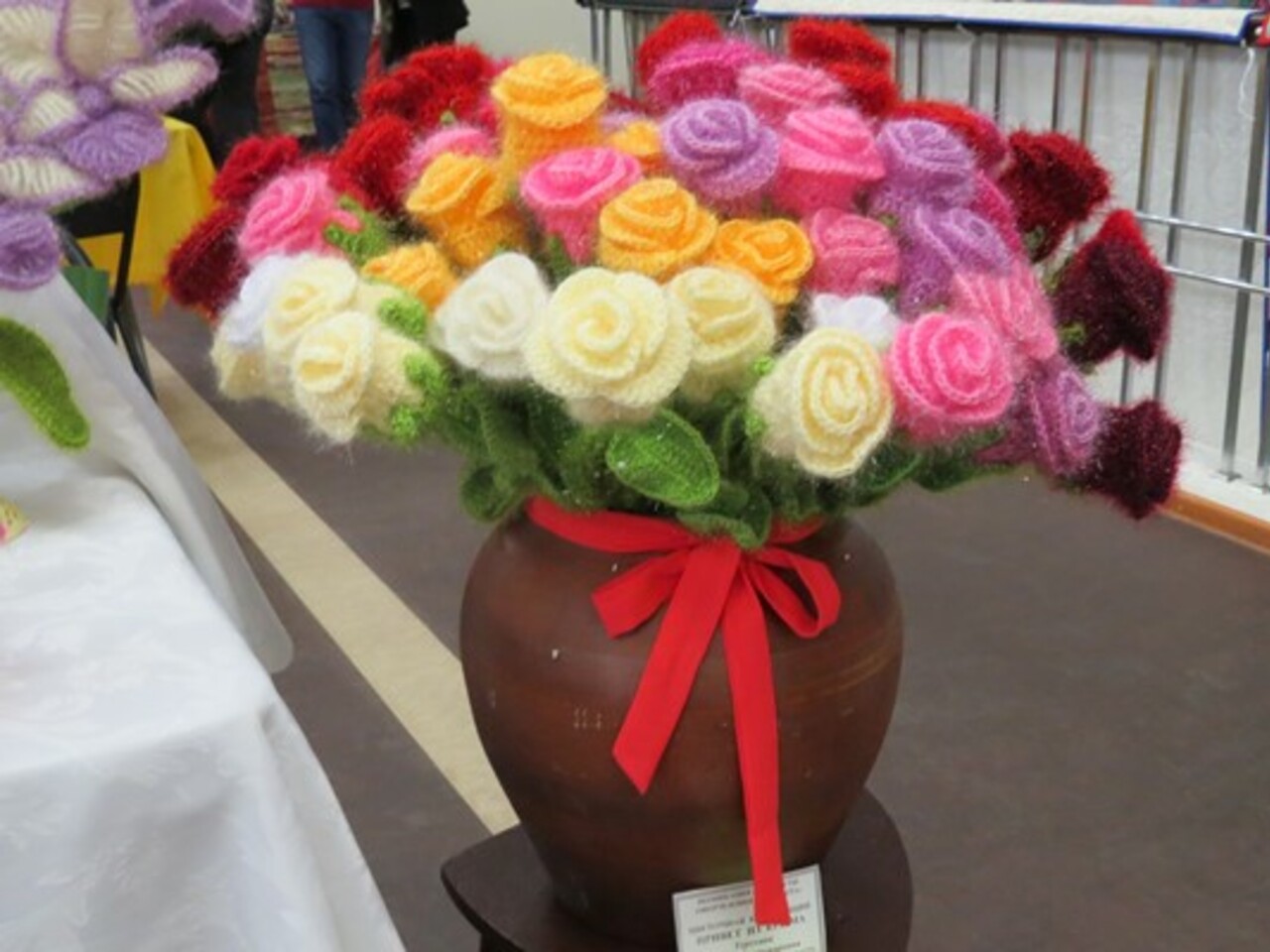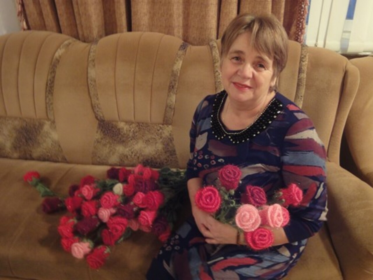 — Честно говоря, не могу сосчитать, сколько цветов я связала — наверное, сотни. Прямо сейчас в моей квартире несколько десятков вязаных изделий. Для изготовления цветов я использую особую турецкую пряжу с блеском. Могу связать абсолютно любые цветы — розы, ромашки, гвоздики, лилии. Из вязаных цветов я составляю целые композиции, букеты. Есть цветы в горшочках, есть в корзиночках, есть в тарелочках. Для оформления вязаного букета изучаю интернет, осваиваю флористику. Ведь, как и в случае с живыми цветами, здесь очень важна цветовая гамма. В качестве основы для цветка используется проволока (это позволяет впоследствии придать цветку любую желаемую форму). На создание одного цветка уходит примерно полтора часа.