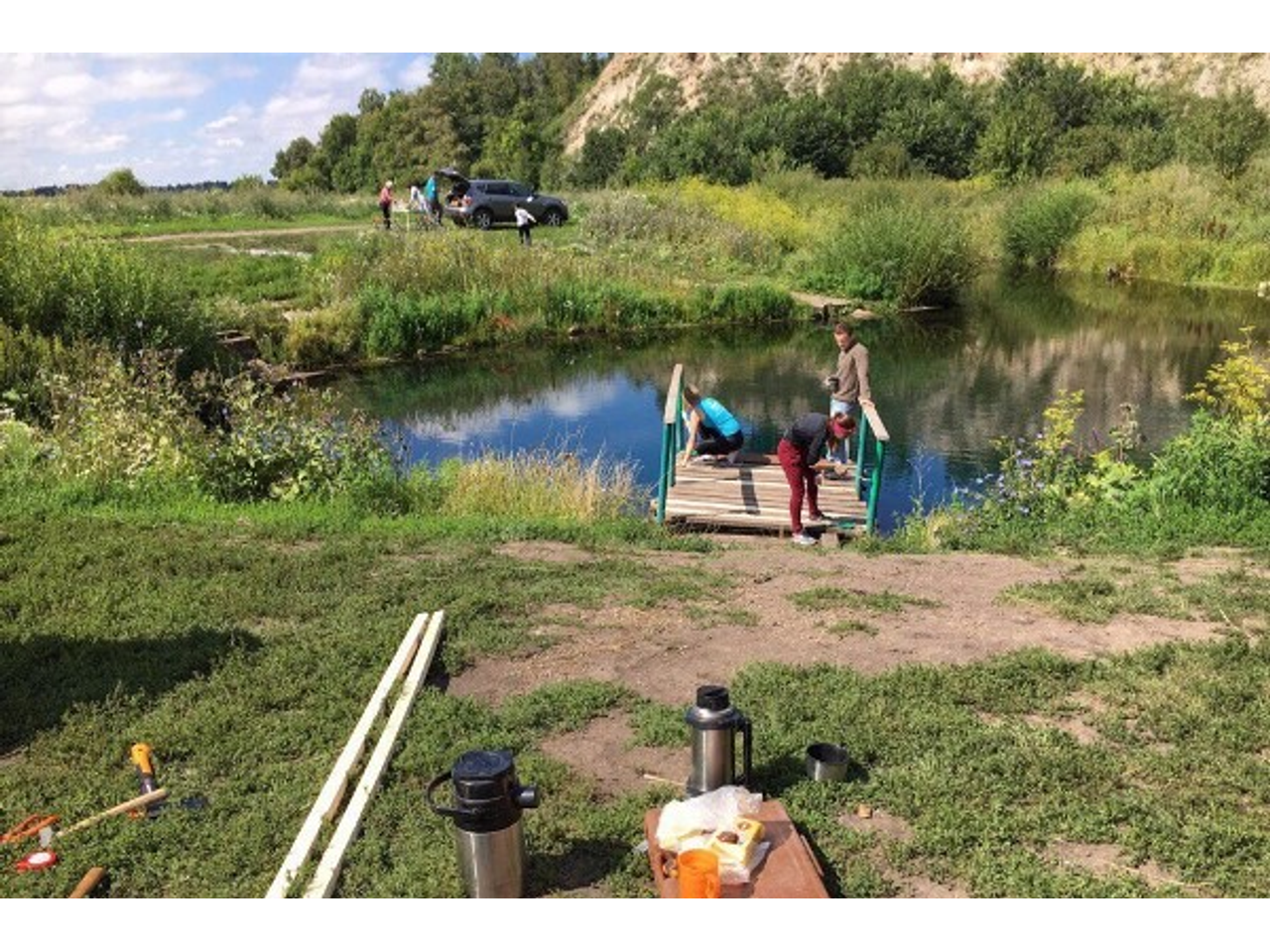 Всего в ремонте моста приняли участие пять человек: две девушки Таисия и Лена и три парня Даниил, Динар и Тимур. Изначально собирались приехать больше людей, но многих в понедельник не отпустили с работы.