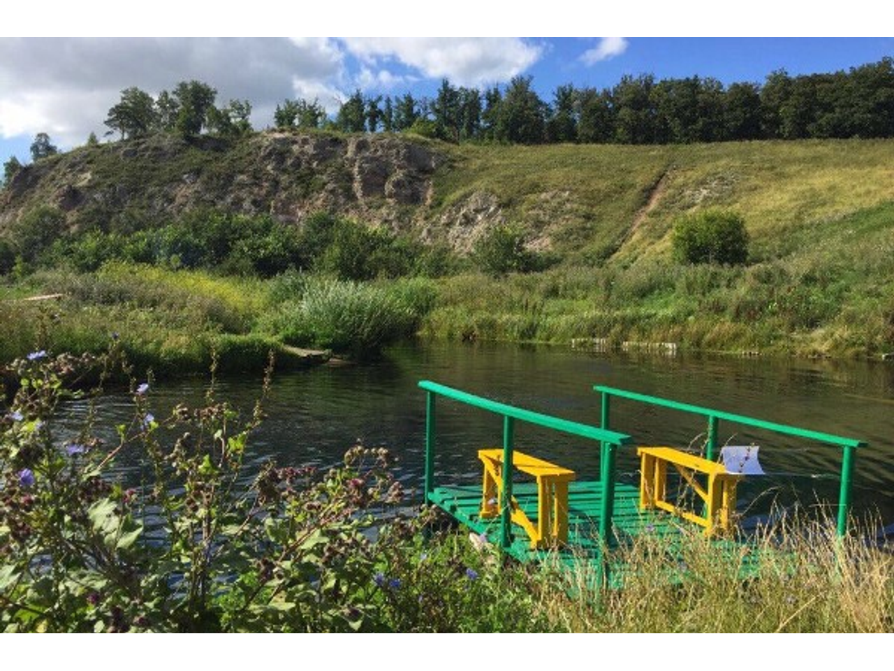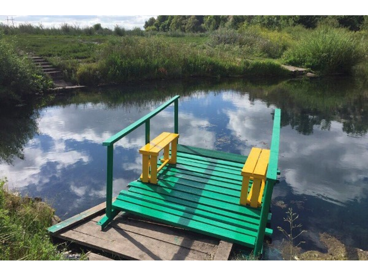 Лена добавила, что на все про все у них ушло около восьми часов. Больше всего времени заняла покраска моста. Ведь красили они его в два слоя, ждали, когда краска более-менее просохнет. Мост получился красивый, ярко-зеленый с желтыми скамейками.