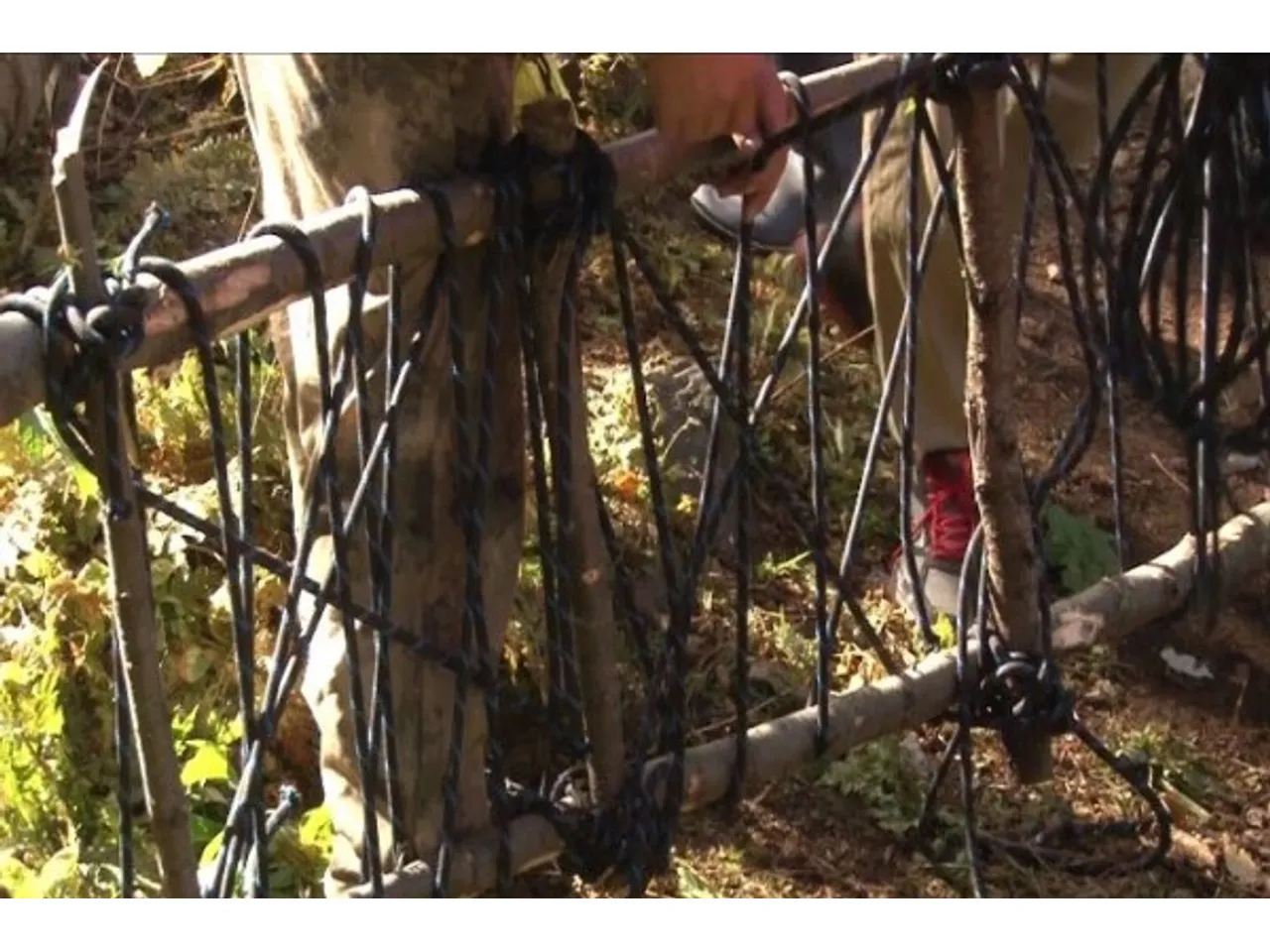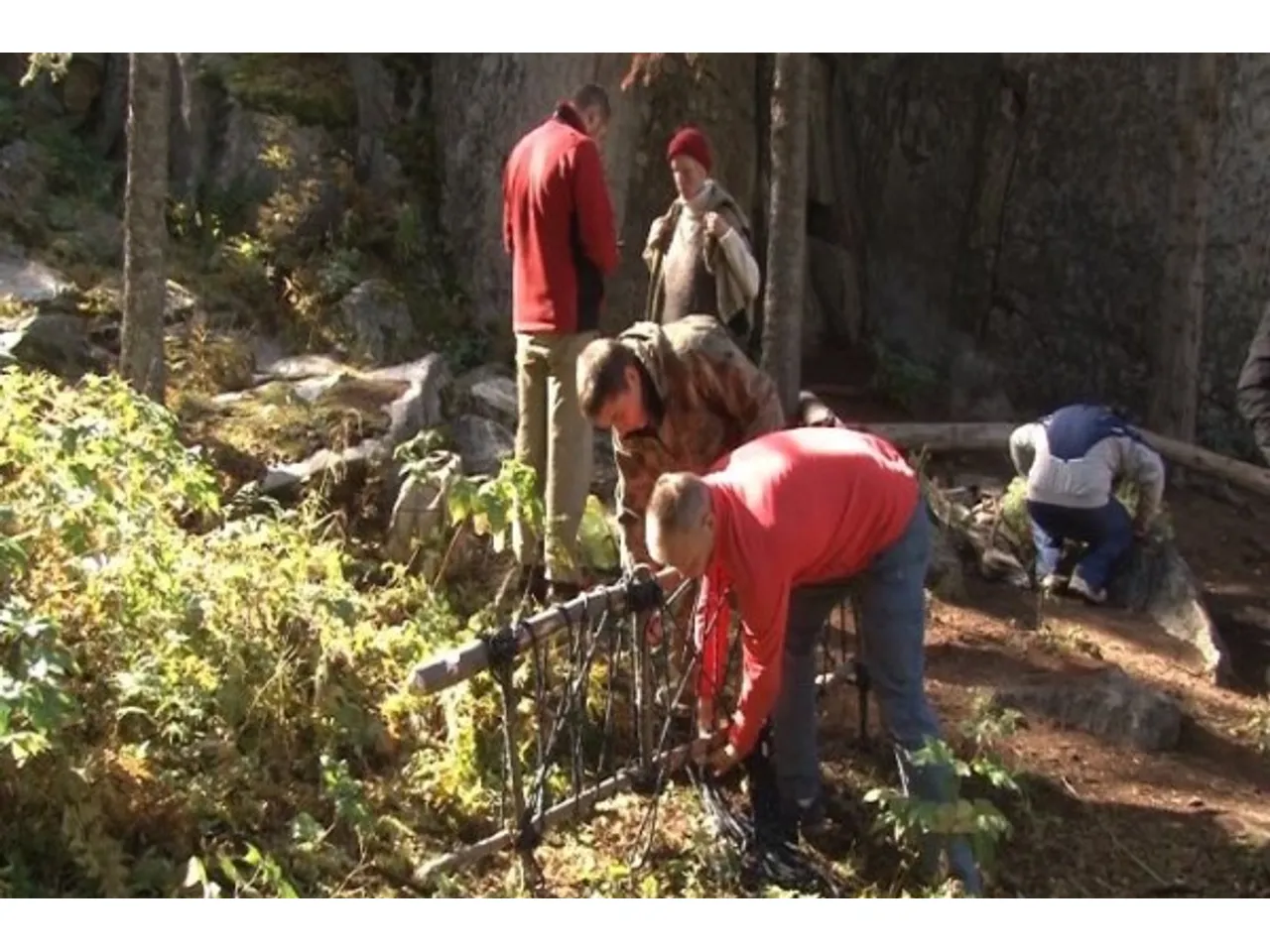 Для начала мы подложили под него туристические коврики, которые принес второй альпинист из Екатеринбурга. Депутат Госсобрания Эдуард Мустафин уже срубил две елки, и они вместе с членом рабочей группы Антоном Сазоновым стали мастерить носилки. Антон в прошлом работал спасателем, он очень грамотно связал носилки, используя альпинистский трос. Подготовка заняла около часа.