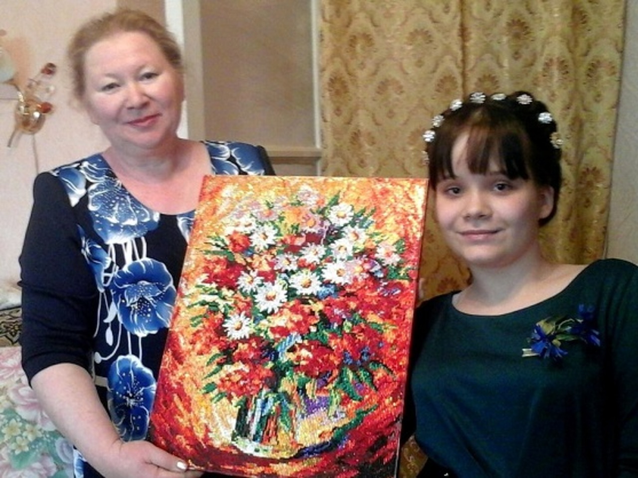 — Настя у меня любознательная, активная, современная, — продолжает Ольга Еремеева. — У нее есть свой канал на youtube, она зарегистрирована во всех соцсетях, активно общается с ребятами, находит друзей. Она подбирает себе в окружение людей, близких по душе, по сознанию. Дружит с теми, кто понимает ее, и кого понимает она. В интернете она общается даже с иностранцами. Она делает красивые тематические видеослайды — подбирает красивые картинки и фотографии, накладывает подходящую музыку. У нее есть подборки, посвященные Уфе, Москве, историческим фактам, временам года, праздникам, чувствам. Называет она их «Веселые слайды». Также она любит вышивать, делать картины из пайеток, страз.