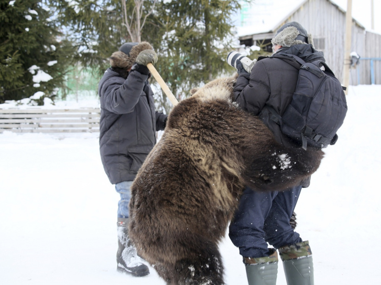 Пока медвежата росли, на ферму часто приезжал известный фотохудожник Фаиль Абсатаров. Снимать животных — одно удовольствие, особенно маленьких, они всегда непосредственны и красивы. Но медвежата незаметно подросли и стали почти взрослыми медведями. И вот однажды, в очередной раз отправившись на ферму, Фаиль обнаружил, что его маленькие четвероногие друзья стали большими, и решил запечатлеть медведя в лесу. Фермер выпустил медведя, и какое-то время, как и планировалось, фотограф снимал хищника на фоне дикой природы. А потом этот хищник, который совсем недавно был маленьким и играл с Фаилем, решил вспомнить детские забавы.
