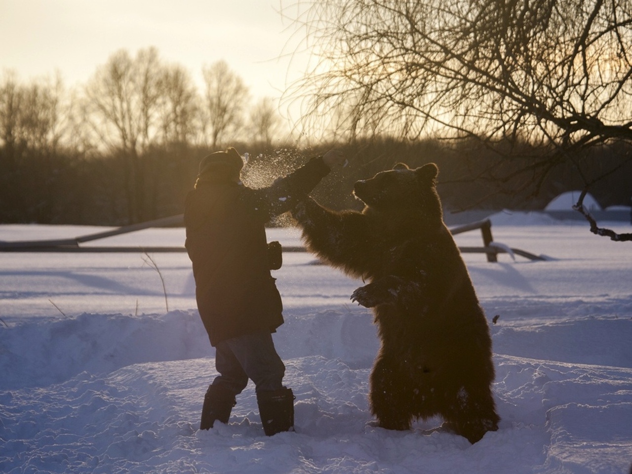 — Медведь ко мне подскочил, меня обнял и дышит в ухо, — рассказывает фотограф. — Хотел, наверное, выразить свои теплые чувства. А зверь здоровенный, так меня сжал, что я чуть дышал. Первым делом я фотоаппарат над головой поднял, чтобы зверь его не загрыз. О том, что он меня может загрызть, я подумал во вторую очередь. Но двинуться в его объятьях я не мог. Так мы и стояли, обнявшись, потом испуганный хозяин подбежал, засунул палку между мной и медведем и, как рычагом, нас разъединил. Я еле отдышался. Но с тех пор прошло уже много времени, и сейчас я рассказываю об этом со смехом.