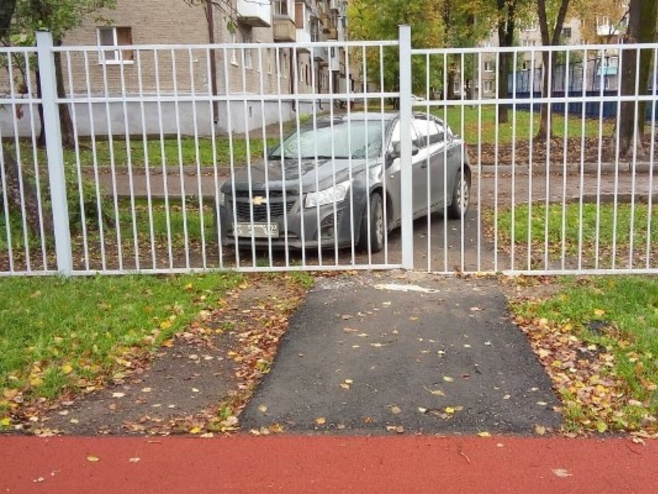А с другой стороны забора новому куску асфальта уже нашлось применение — его присмотрел для своего четырехколесного друга предприимчивый автовладелец.