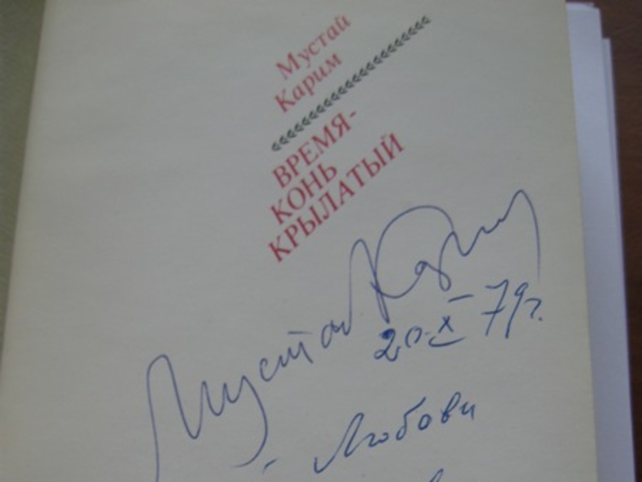 В те годы я работала редактором университетской многотиражной газеты и к юбилейной дате выпустила специальный номер с большой подборкой, посвященной Мустаю Кариму. Помню, после окончания официальной части я подошла к Мустафе Сафичу и протянула ему только что отпечатанный номер газеты и его стихотворный сборник с просьбой оставить автограф. Поэт очень спешил и успел только размашисто расписаться на книжке. Кстати, выпущенный в Москве шикарный сборник стихов «Время - конь крылатый» я приобрела на каком-то серьезном мероприятии и очень им гордилась.