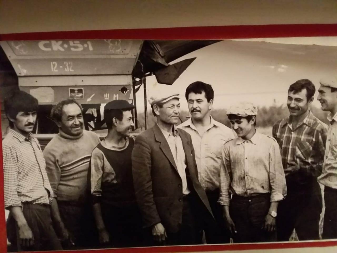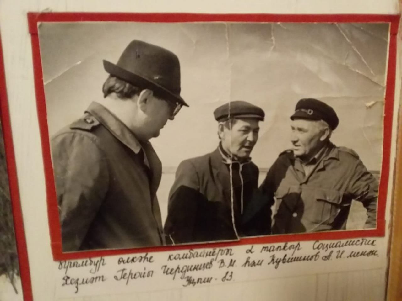 Эта фотография — историческая. Два Героя Социалистического Труда — из Башкирии и Оренбуржья. Яхин и Чердинцев. Много лет они соревновались, обменивались опытом, обдумывали, как подготовиться к жатве, устанавливали всесоюзные рекорды.