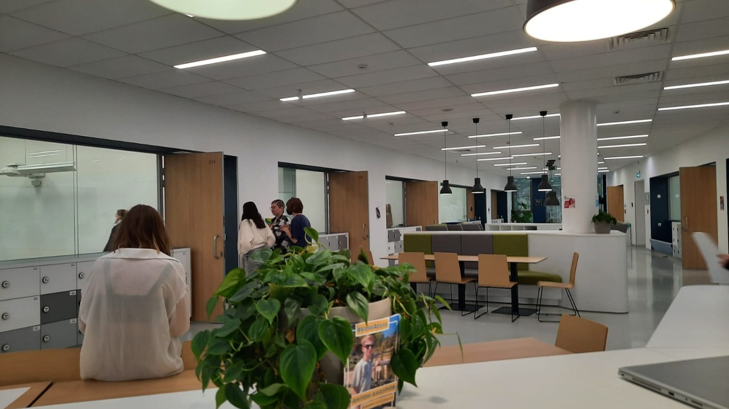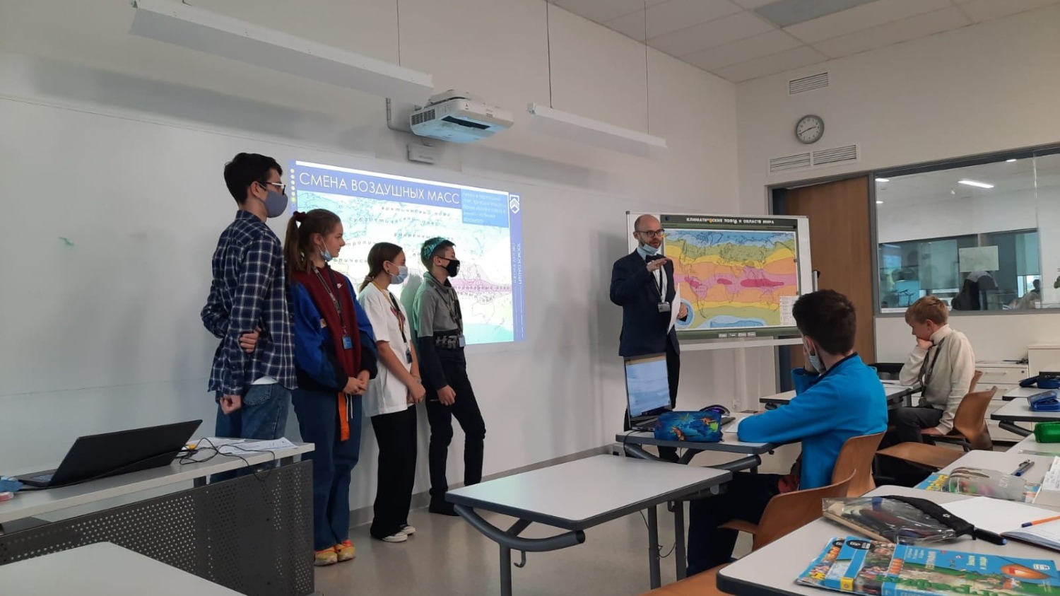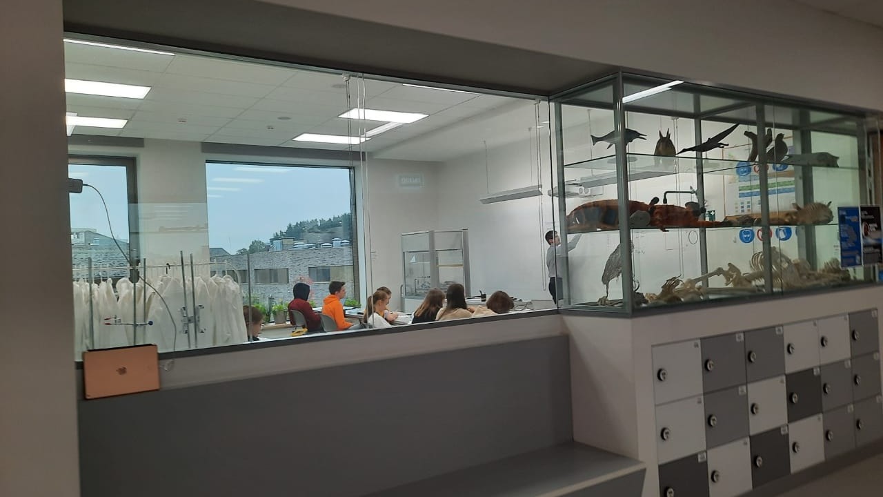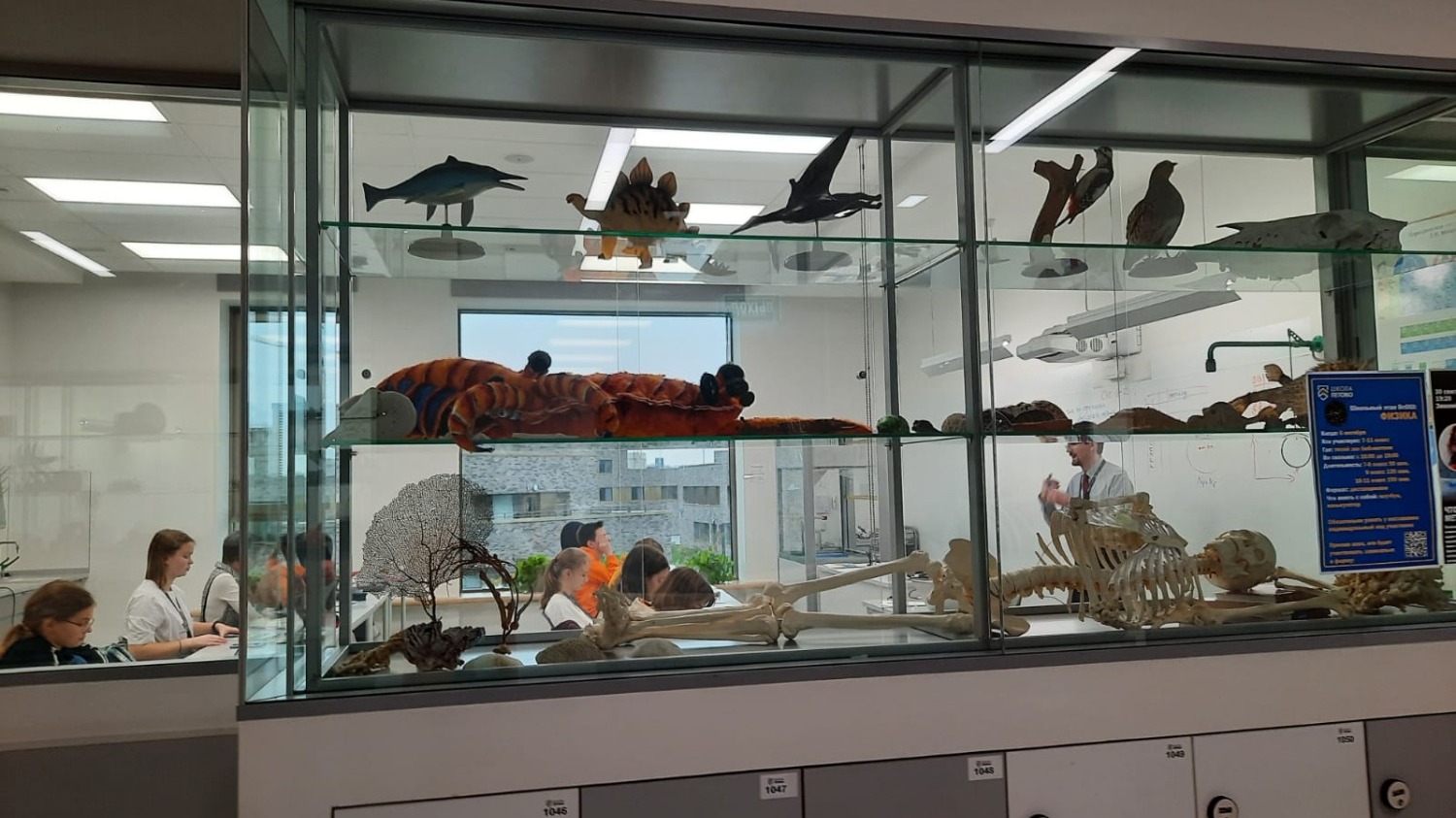 То, что все классы находятся за стеклом. Дети передвигаются свободно. Если урок не понравился, ребенок может выйти из класса. Кстати, учительская комната тоже за стеклом. Видно, чем занимаются учителя. Все двери открыты. Это в целях безопасности.