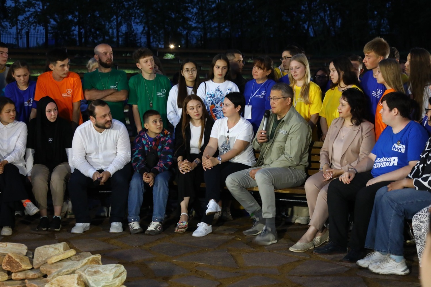 — Пусть и у вас будет эта история, когда вы вечером, как сегодня, под луной будете собираться, петь песни, танцевать. Такие встречи с волонтерами теперь здесь будут каждый год, — пояснил Глава Башкирии. — В парке «Патриот» помимо общения вы сможете получить определенные навыки и знания.