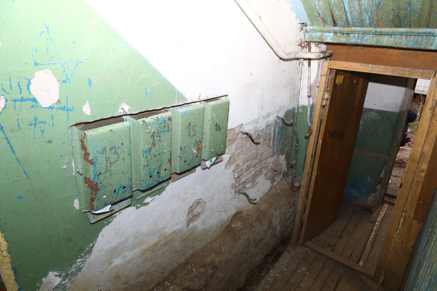 — Дом попадает под снос, но в нем пока живут три семьи, в которых есть несовершеннолетние дети, в одной из семей недавно родился ребенок. Дом постоянно оккупируют лица без определенного места жительства. Многие окна выломаны, — делится мужчина. — Жильцы пытаются их заколотить своими силами, но окна снова выламывают. Два-три месяца назад украли железную подъездную дверь! Исчезли также и батареи из пустующих квартир. Я написал официальное письмо, где просил установить дверь в подъезде, но бесполезно. Уборка подъезда и придомовой территории силами ЖЭУ не проводится. В квартирах холодно.