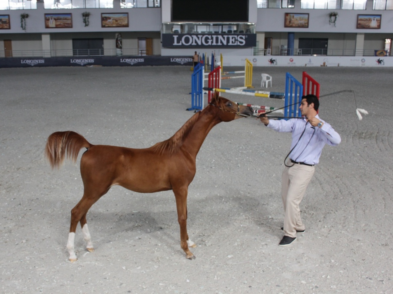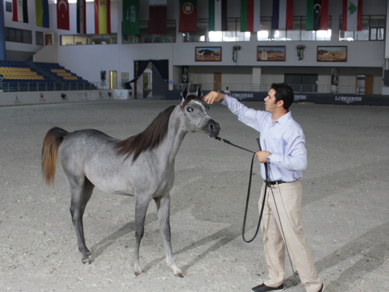 Ну а после нам продемонстрировали всю красоту arab beauties на подиуме. Я и мои коллеги тут же защелками затворами фотоаппаратов – пропустить такое зрелище было невозможно! Какой-нибудь специалист в области коневодства, наверное, отдал бы год жизни за присутствие в этом зале. Сначала нашему вниманию представили двух молодых скакунов – стройных и строптивых. Чтобы кони перешли на аллюр, сотрудники центра пугали их громкими хлопающими звуками. Ну а потом нам показали более взрослых лошадей.