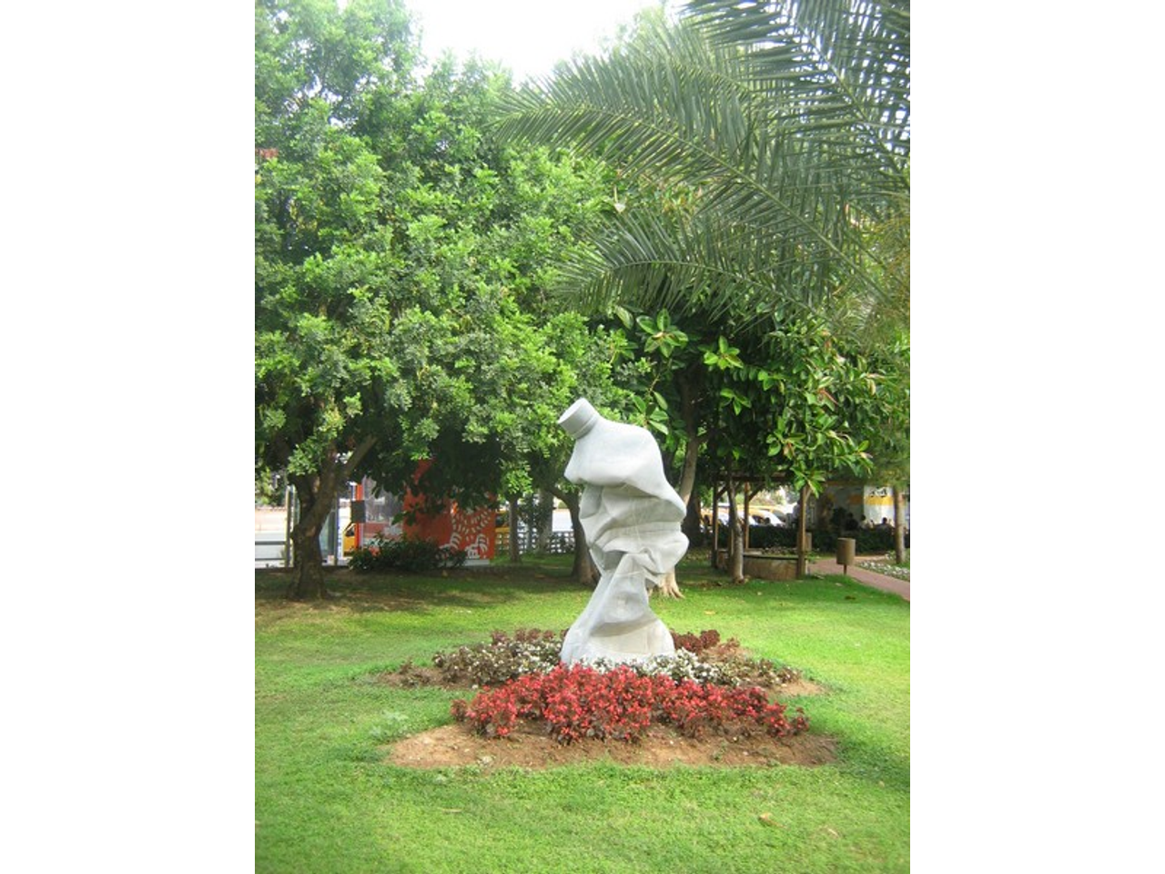 В Алании много скульптур. Они небольшие, поставлены на лужайках в парках, разделяют районы города, привлекают к себе внимание. Некоторые символизируют что-то конкретное, а некоторые совершенно абстрактны, как вот эта, напоминающая смятую пластиковую бутылку. Тем не менее они очень украшают город.