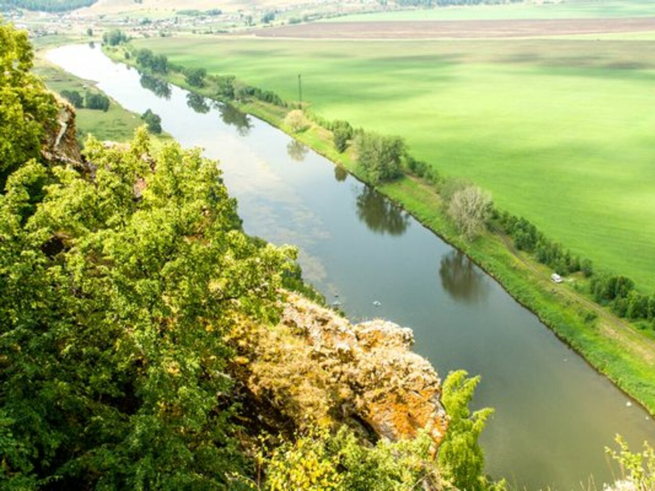 Наша «кругосветка» начинается на восточном выезде из Уфы и первые 90 километров нужно ехать по трассе М5 до ашинского поворота. А там уже свернуть на дорогу, ведущую в Миньяр. Здесь из окна автомобиля открывается живописная долина реки Сим.