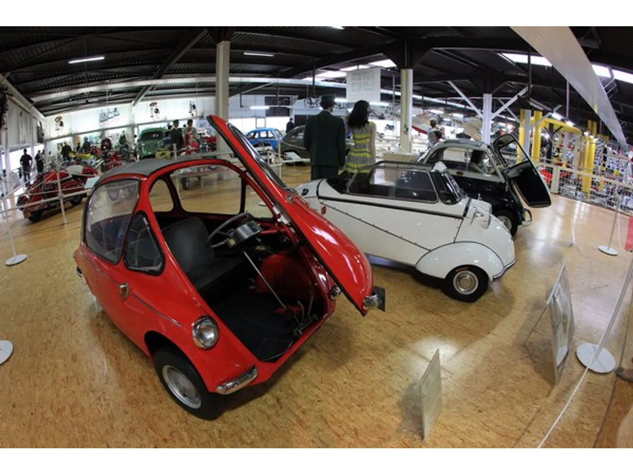 Есть весьма неожиданные экспонаты. Замысловатый мотоцикл-колесо, велосипед на 12 персон и утилизированный знаменитый немецкий «Жук» в виде металлического кубика, трёхколёсные автомобили.