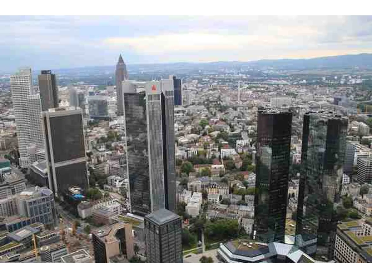 В деловой части Франкфурта компактно расположены офисные здания. На крыше одного из небоскрёбов устроена смотровая площадка, ставшая излюбленным местом молодёжи и туристов.