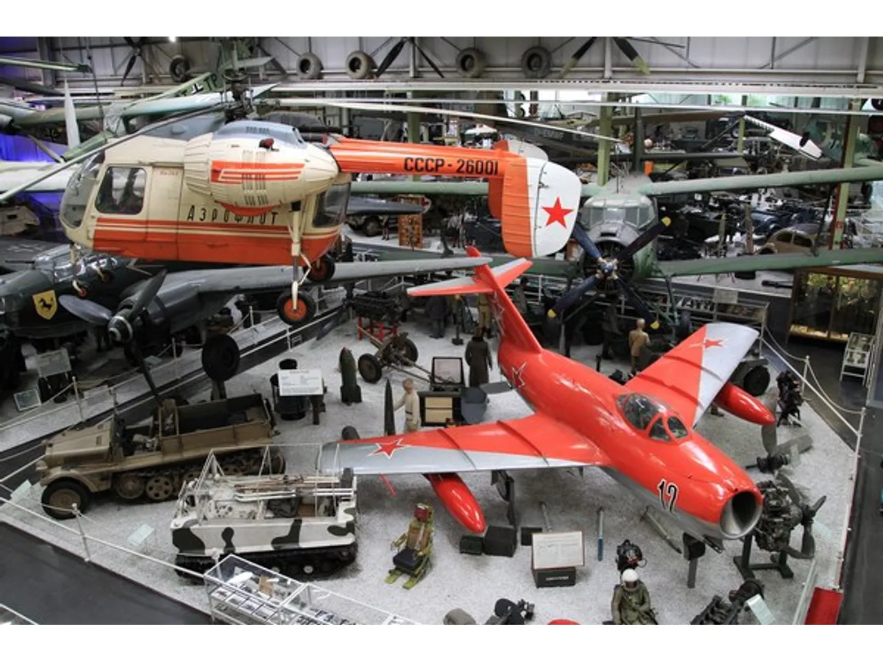 В музее представлено много военной техники. На одной площадке встретились советский Ан-2 и пикирующий немецкий бомбардировщик.