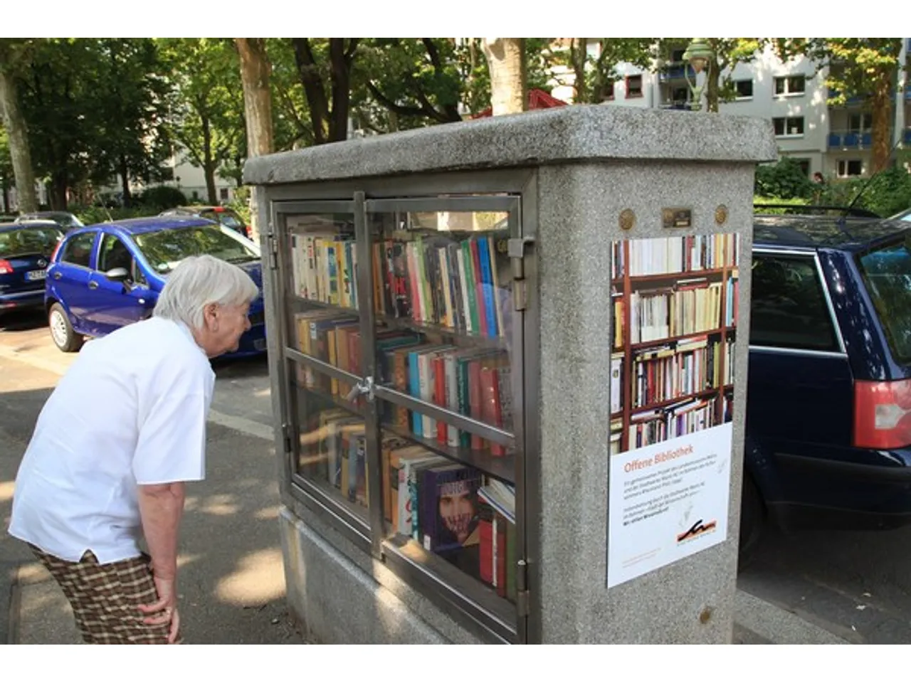 Вот уличный книжный шкаф, где любой желающий может взять понравившуюся книгу или пополнить его книгой, ставшей ненужной дома.