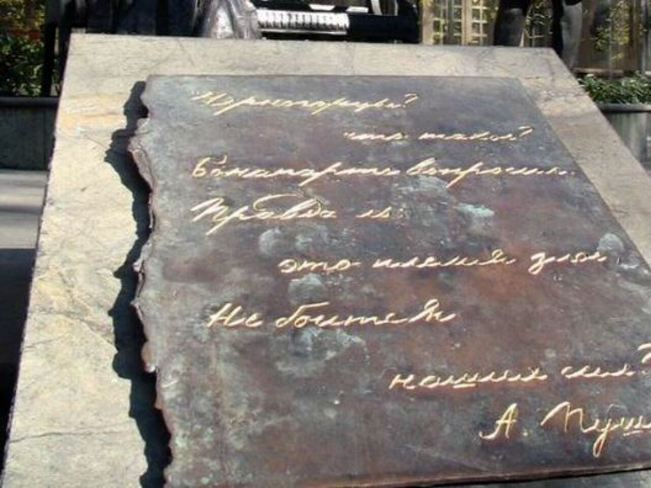 Рядом с памятником Пушкину расположены две каменные плиты. На одной из них начертано: «Памятник А.С. Пушкину. Дар города Москвы Подгорице». На другой плите высечены стихи великого поэта о Черногории: