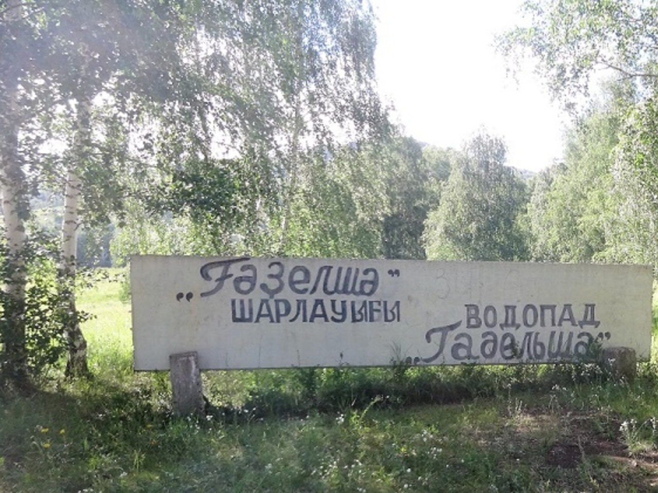 На поиск водопада Гадельша у нас ушло несколько часов. Находится этот памятник природы в Баймакском районе Башкирии, недалеко от Старого Сибая. Но найти его не так-то просто. Никаких дорожных указателей нет. На помощь нам пришли жители Старого Сибая. Они рассказали, по какой дороге и в каком направлении нужно ехать. Однако дорога к водопаду оказалась проселочной. К тому же она постоянно раздваивается. Несколько раз получалось, что мы выбирали не то направление. Приходилось останавливать все встречные машины, а их было не так много. В итоге более-менее внятно местоположение водопада нам объяснили жители Челябинской области. Проехав более 20 километров, в лесной чаще мы нашли-таки указатель с надписью «Гадельша».