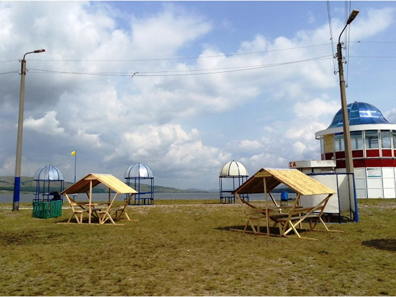 Вход на основной пляж бесплатный, территория опять же порадовала чистотой — по всему видно, что благоустроенности здесь уделяют должное внимание. Вход в воду пологий, приятное на ощупь дно. На пляже представлен весь стандартный набор развлечений: прокат лодок, катамаранов, беседки со столиками под навесами, которые можно арендовать за 200 рублей в час, здесь звучит музыка, по вечерам устраивают дискотеки.