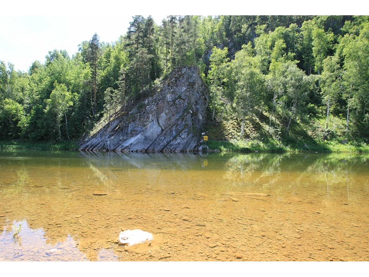 Без особых приключений прибыли к пункту назначения. Сразу бросились в глаза необычные дорожные знаки «Берегись медведей». Оказывается, косолапые нередко встречаются в лесном массиве, окружающем водохранилище. Так что не стоит углубляться далеко в лес! Однако этот фактор никак не отпугивает народ — это место чрезвычайно популярно у отдыхающих. Нугушское водохранилище было создано в 1965 году, и практически сразу здесь начала развиваться туристская инфраструктура. Так что сейчас на его берегах множество турбаз и детских лагерей. Они расположены на берегу вплотную друг к другу, и каждая имеет свой выход к воде.