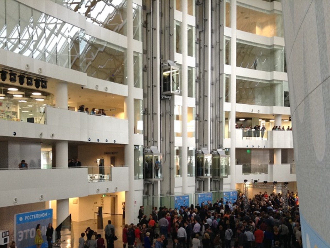 На первом этаже этого огромного комплекса проводятся разного рода культурно-массовые мероприятия, во время нашего посещения там проходил Первый уральский открытый фестиваль российского кино.