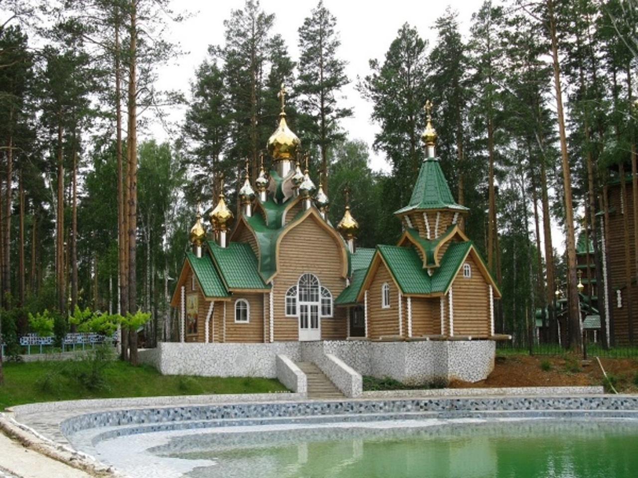 Храм очень красив — он стоит на возвышенности, виден издалека и привлекает внимание своей величественностью. Снаружи — скульптурное изображение царской семьи.