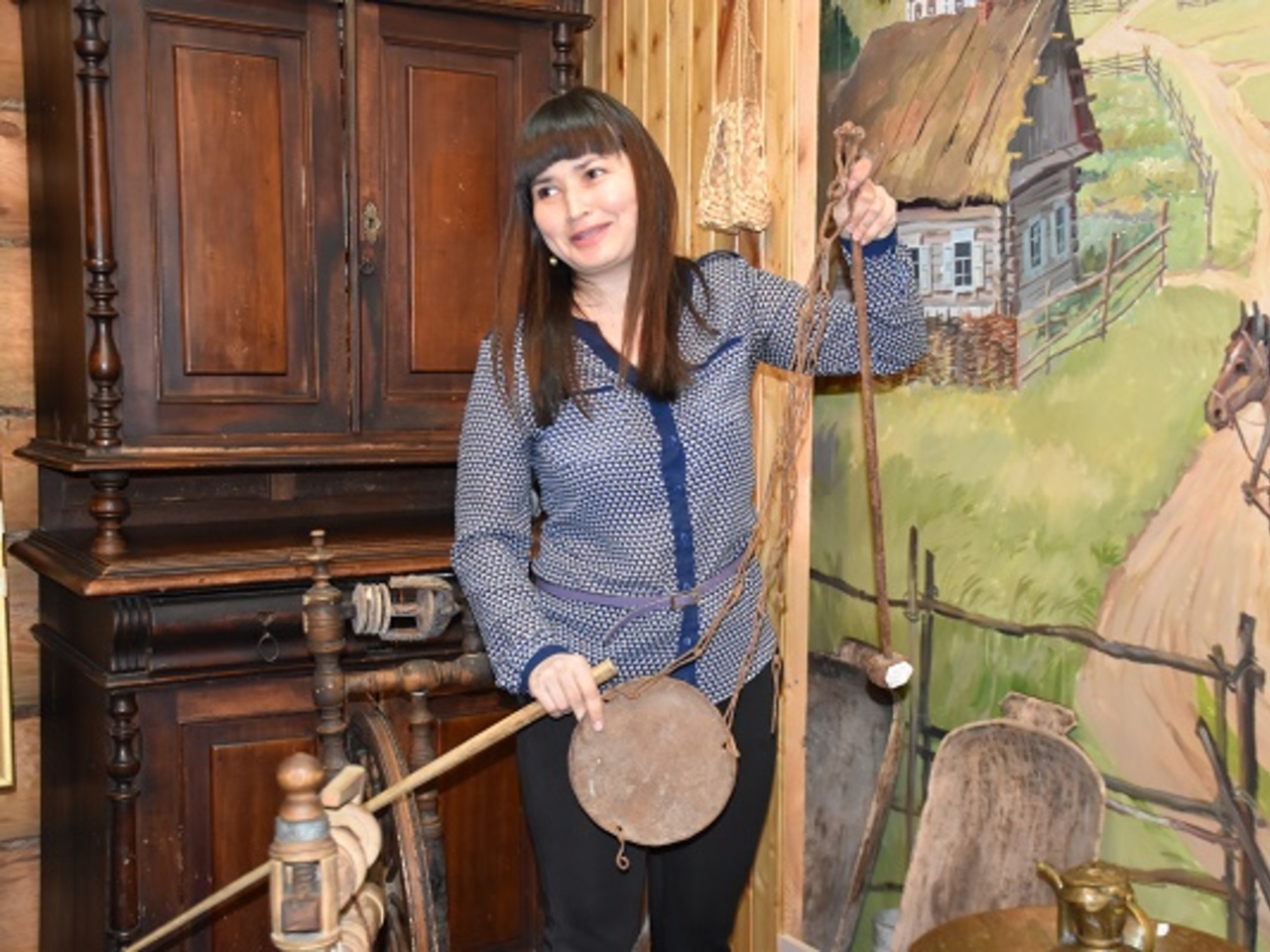 Нам рассказали, что такое парь (мордовский сундук для приданного), продемонстрировали, как выглядели мордовские лапти — от обычных они отличаются тем, что к их подошве прикреплены деревянные бруски.