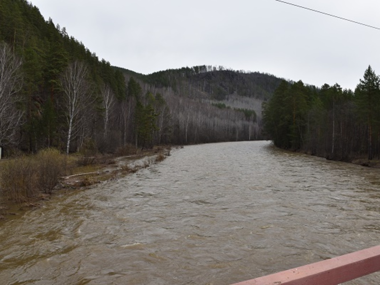 До Айгира можно идти либо по гравийной насыпи параллельно путям, либо по проселочной дороге чуть ниже рельсов. Сначала мы решили идти по дороге, но вскоре она ушла под воду — разлилась река Малый Инзер.