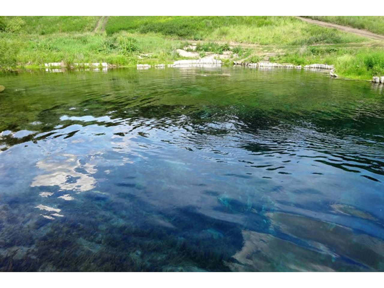 Голубое озеро. Назвали его так из-за необычайно красивого голубоватого цвета воды. Озеро имеет карстовое происхождение. На дне находится много родников и глубоких воронок. А вода в нем очень холодная. Причем вне зависимости от времени года имеет одну и ту же температуру — плюс четыре градуса. Зимой озеро не замерзает.