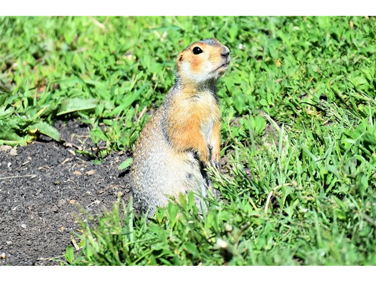 Когда суслик чувствует опасность, он встает на задние лапки — очень смешная поза — и издает звук, похожий одновременно на свист и шипение.