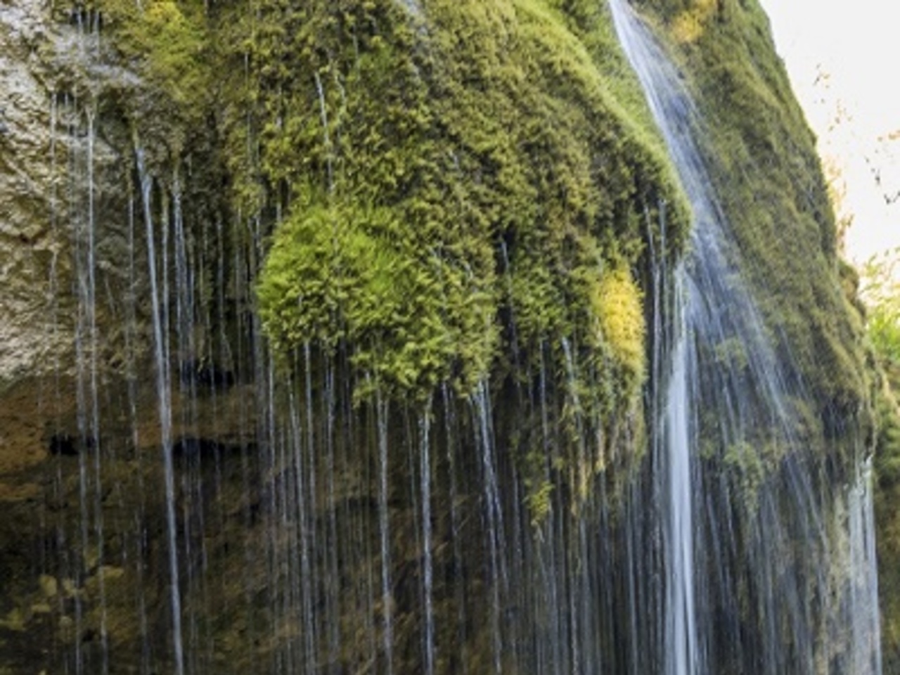 При выходе на поверхность вода теряет углекислый газ (он выделяется в виде газовых пузырьков), часть воды испаряется, концентрация карбоната кальция достигает предела насыщения, и образуется осадок. Кристаллики кальцита осаждаются из водной пыли при водопадном стекании потока на мох. А потом на стебельках и листьях возникают лёгкие пористые образования светло-серого цвета — «окаменелый мох».