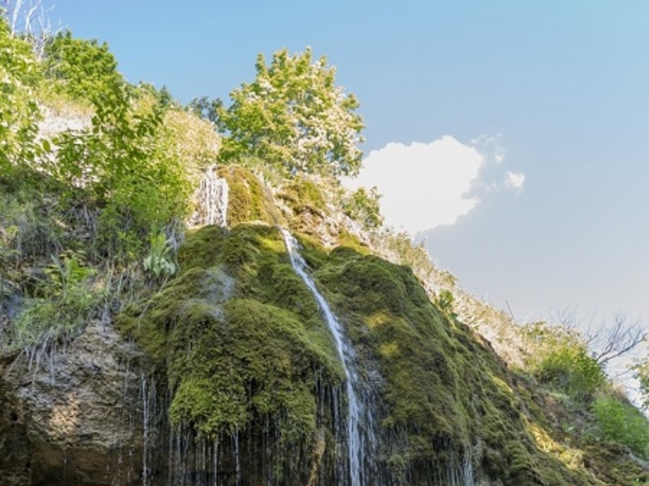— Водопад образуют Шумиловские ключи, — рассказал Игорь Данилко. — На высоте 292 метров на поверхность земли выходят два мощных родника. Один родник в левой части массива — мощностью до 50 литров в секунду — образует ниже каскады 14-метрового Шумиловского водопада.