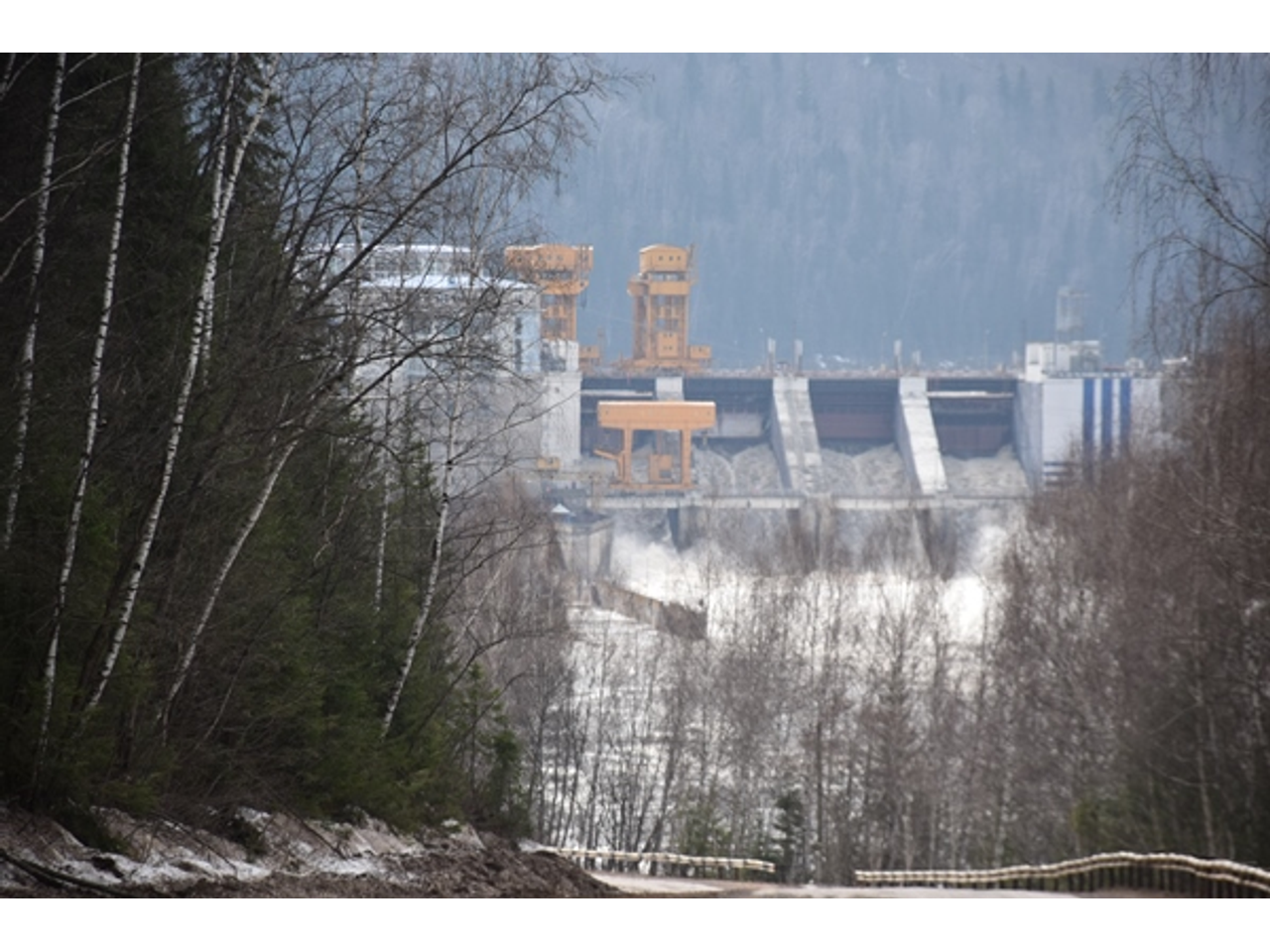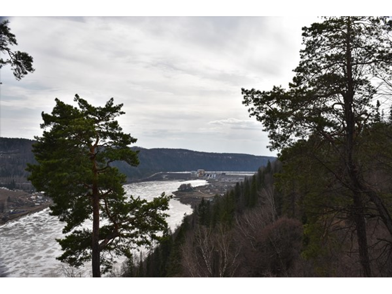 Дорога в село как раз проходит по территории ГЭС. Там сооружен деревянный однополосный автомобильный переезд. С одной стороны водохранилище, с другой — 43-х метровая плотина. Сооружение монументальное, построенное, как говорится, на века. Чувствуется вся мощь и сила советской энергетики. Фотографироваться и снимать видео на территории ГЭС запрещено, но издалека запечатлеть плотину можно.