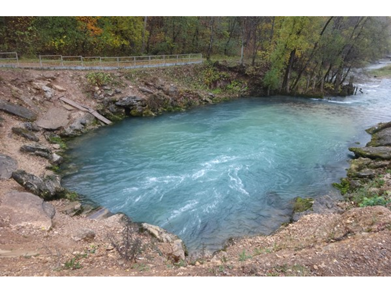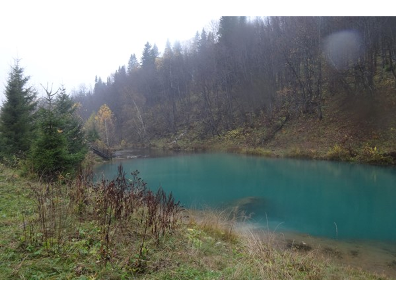 Особенно красив Красный Ключ осенью. На фоне увядающей природы цвет воды в источнике кажется фантастическим.