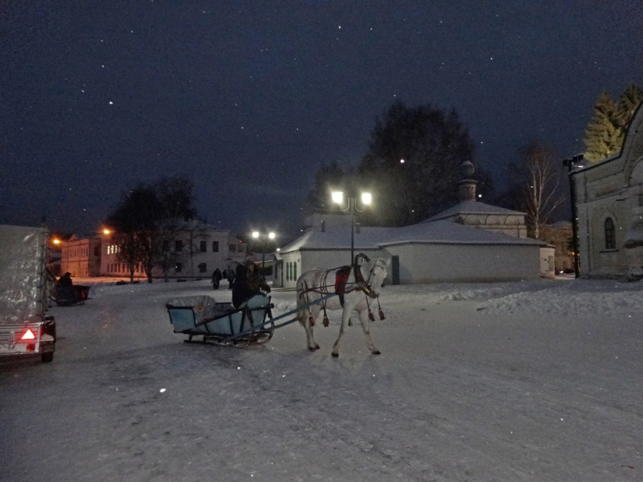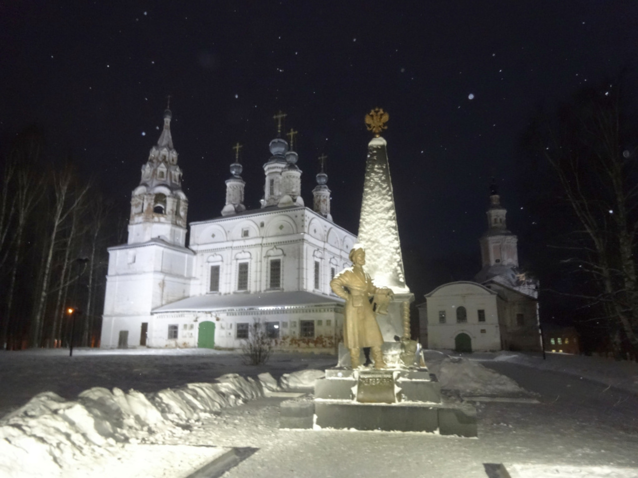 Ехали мы через Яранск, Шахунью, Никольск и Кичменгский городок. До Великого Устюга добрались уже в пятом часу дня. Кстати, темнеет в Вологодской области непривычно рано. В четыре часа дня становится уже довольно темно.