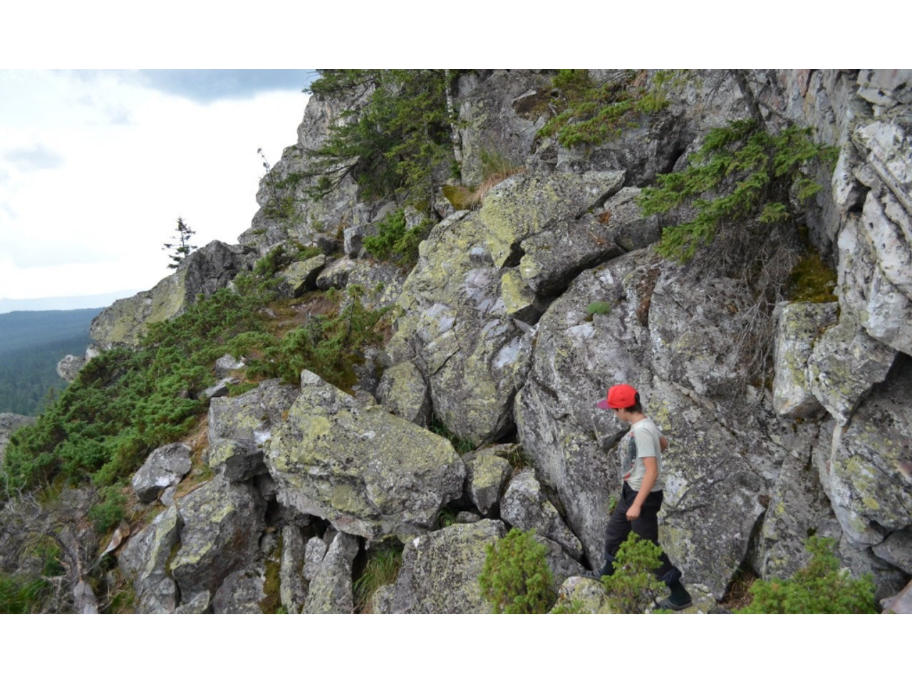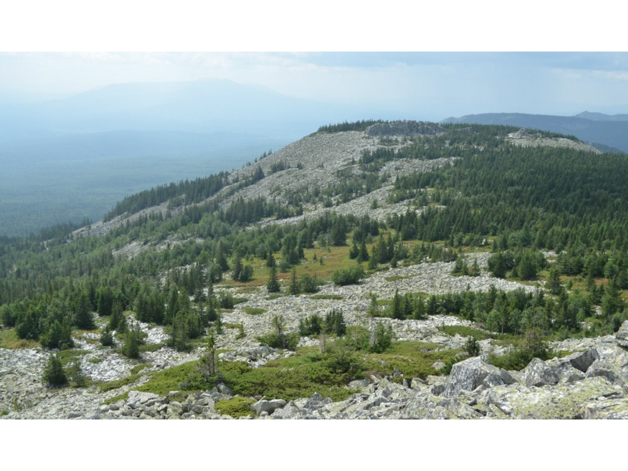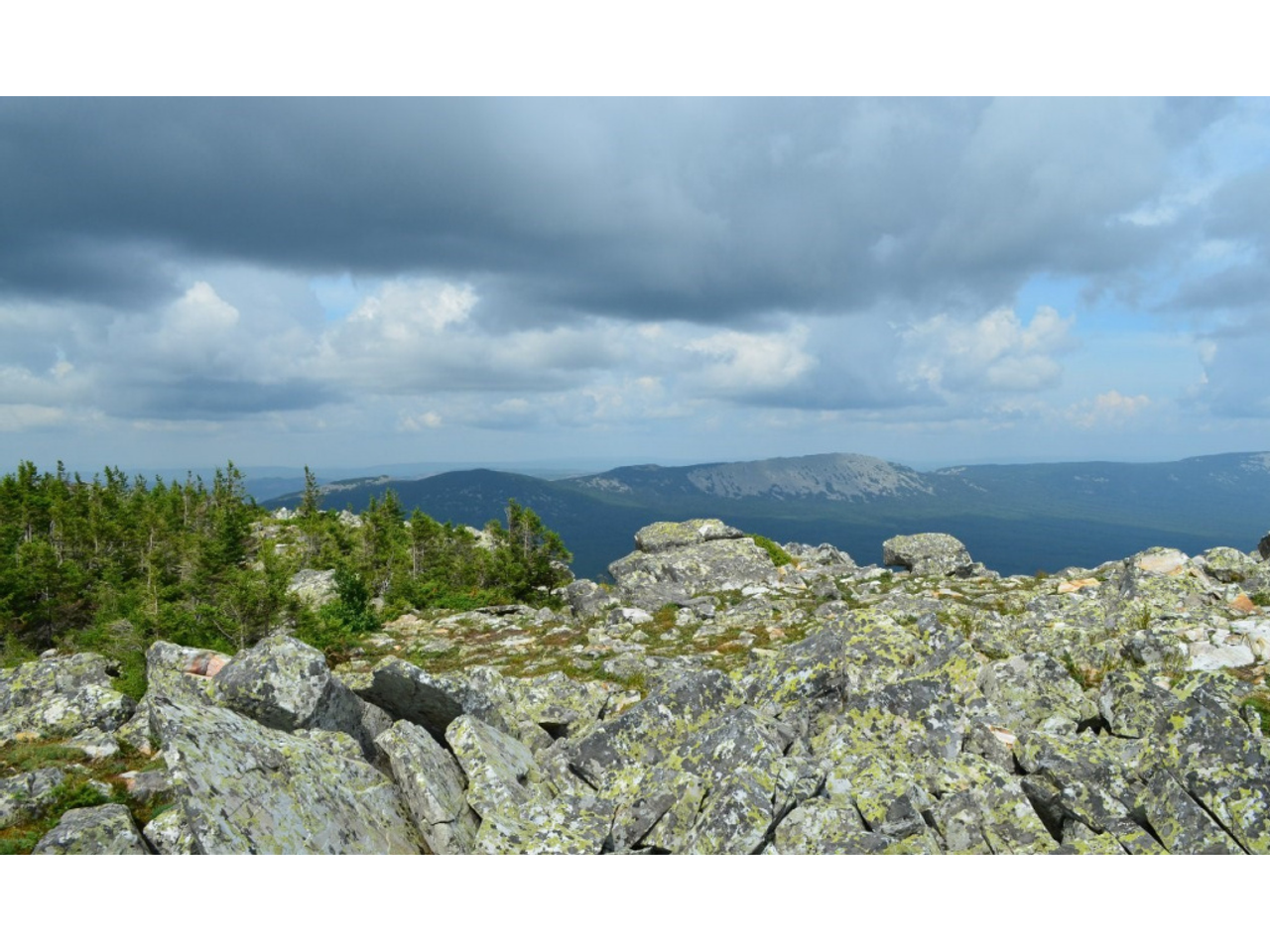 К нему идет тропа через небольшой массив, который сменяется непродолжительным курумником. Чтобы забраться на самый верх, нужно подтянуться, зацепившись за ствол березы. И тогда, оказавшись на небольшой площадке с несколькими высокими камнями, можно со всех сторон разглядеть соседние вершины. Сказочный вид!