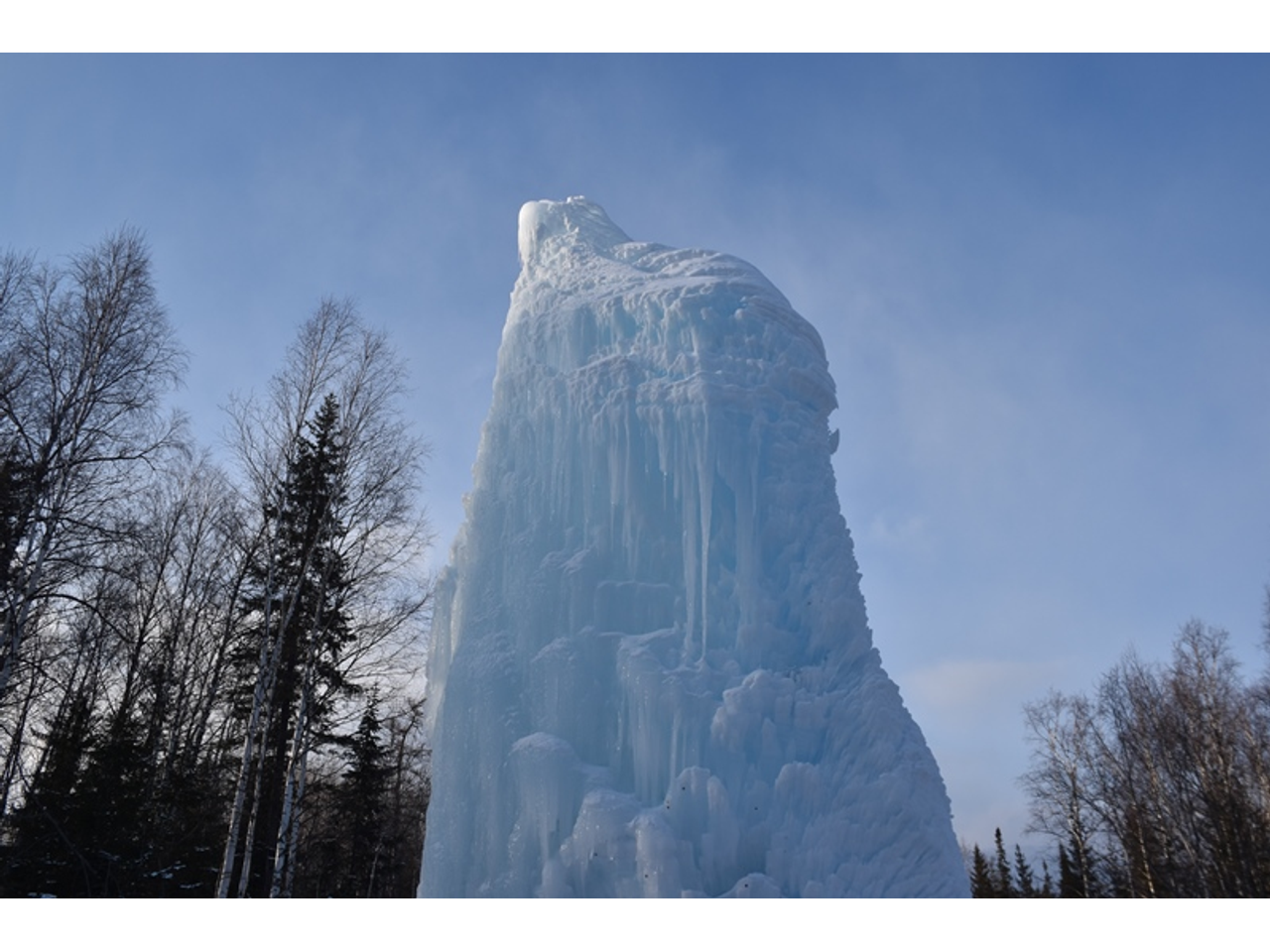 Летом фонтан интереса не представляет: в земле торчит труба, из которой вода разбрызгивается во все стороны. И если подойти совсем близко, холодный душ обеспечен. Зимой все подмерзает и образует невероятно высокий ледяной столб, а иногда он принимает причудливые формы.