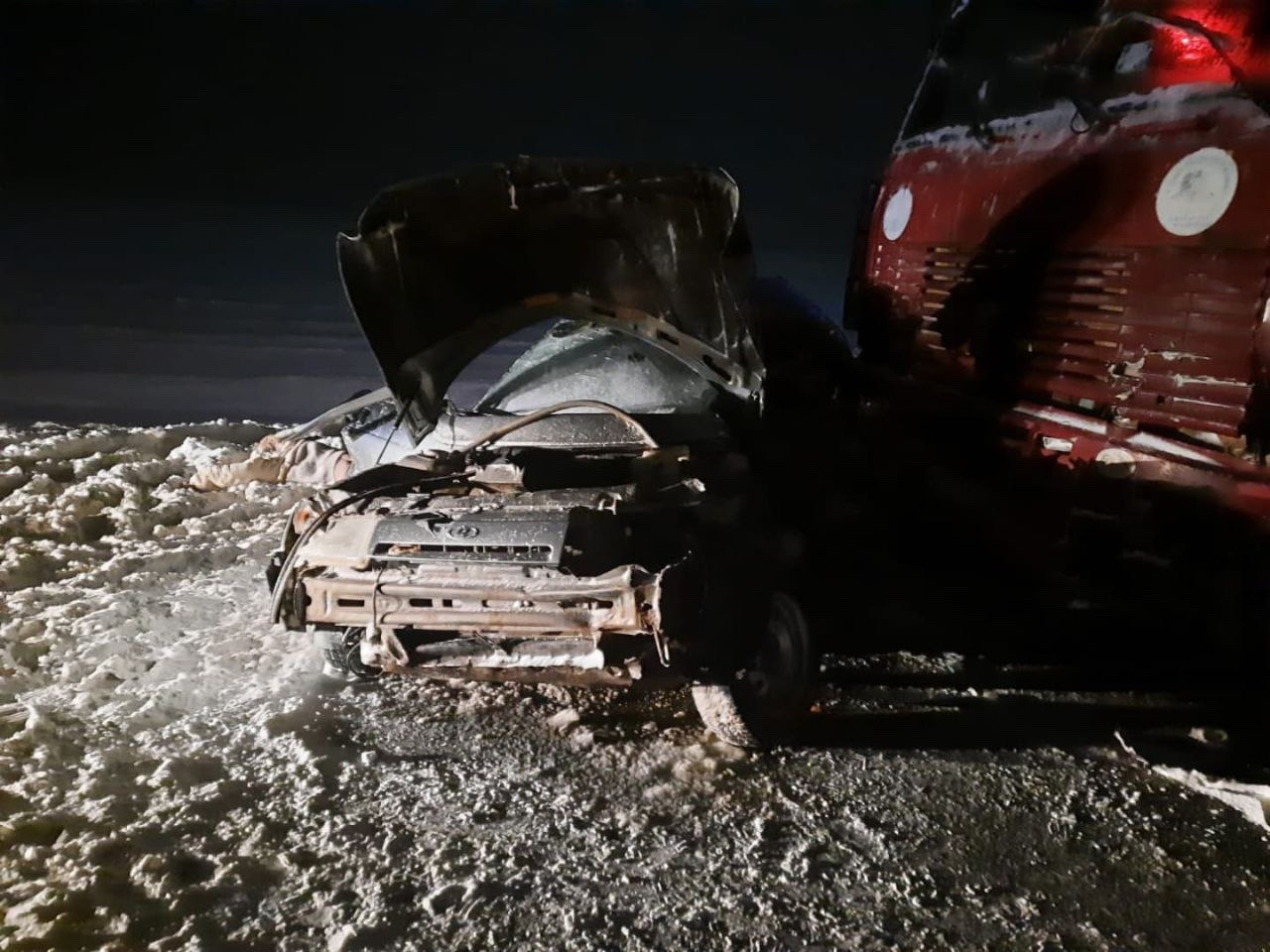 В результате аварии водитель легкового автомобиля от полученных травм скончалась на месте. Авария произошла в условиях сильного снегопада. На месте происшествия работает следственно-оперативная группа. Подробности ДТП уточняются.