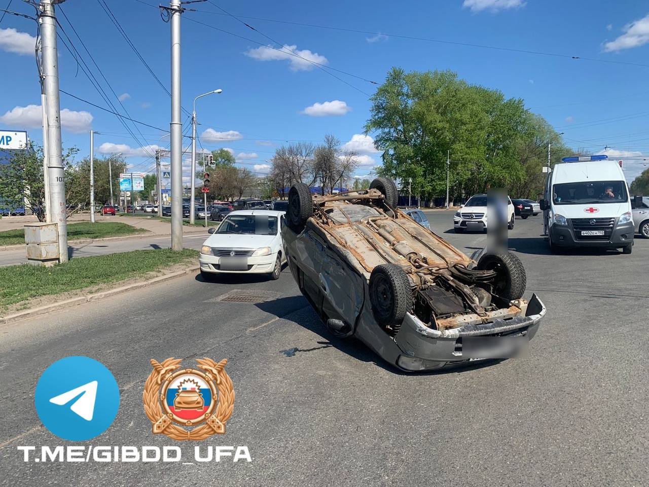 Как сообщили в отделе ГИБДД Уфы, авария произошла около двух часов дня 29 апреля на улице Трамвайной в Калининском районе. По предварительным данным, 54-летний водитель автомобиля Toyota Avensis, двигаясь по улице Трамвайной и совершая поворот на Уфимское шоссе, допустил столкновение со встречной машиной Nissan Cube. От удара второй легковой автомобиль перевернулся на крышу.