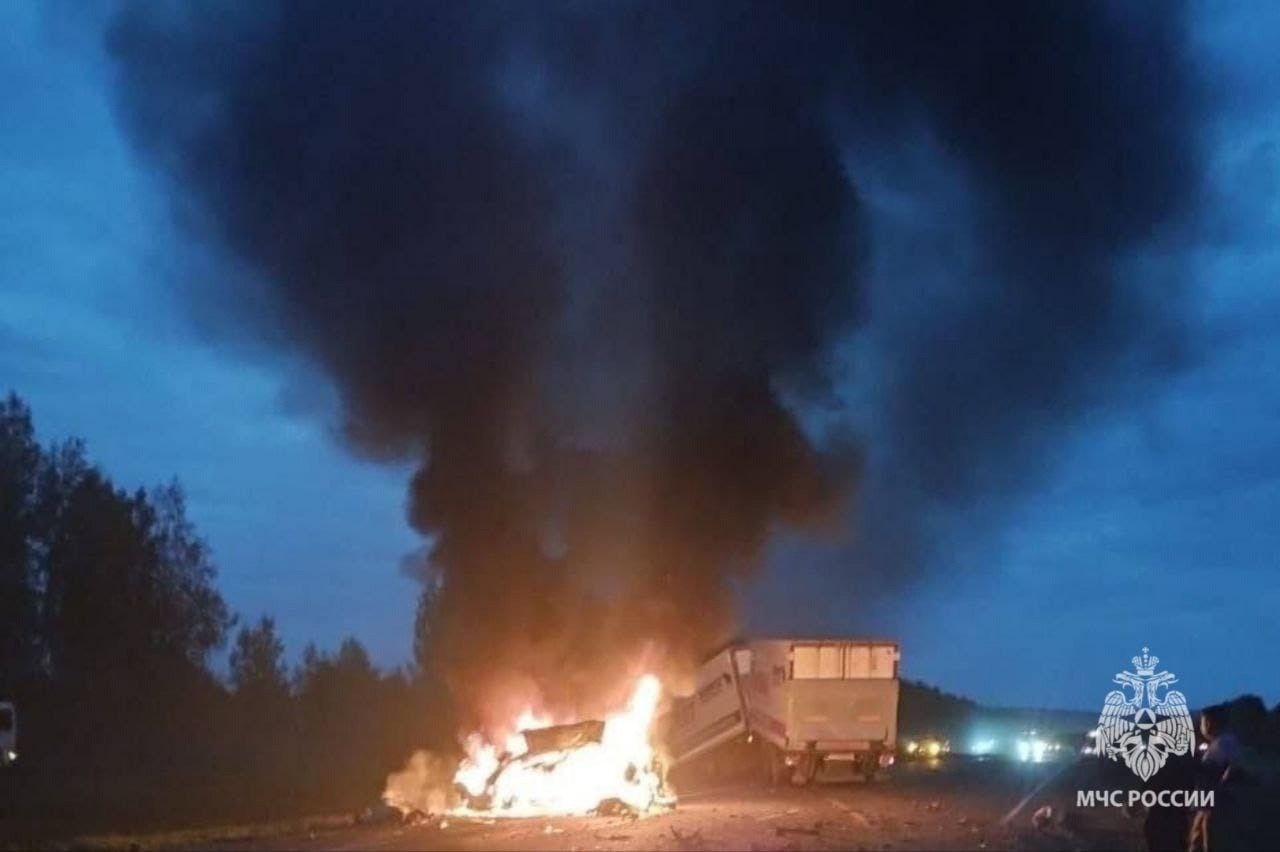Сегодня вечером на автодороге Уфа-Бирск-Янаул столкнулись два легковых автомобиля и фура. Легковой автомобиль быстро воспламенился. Подробности сообщили в Госавтоинспекции РБ.